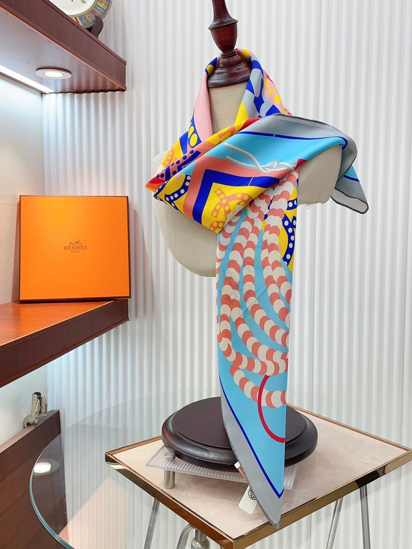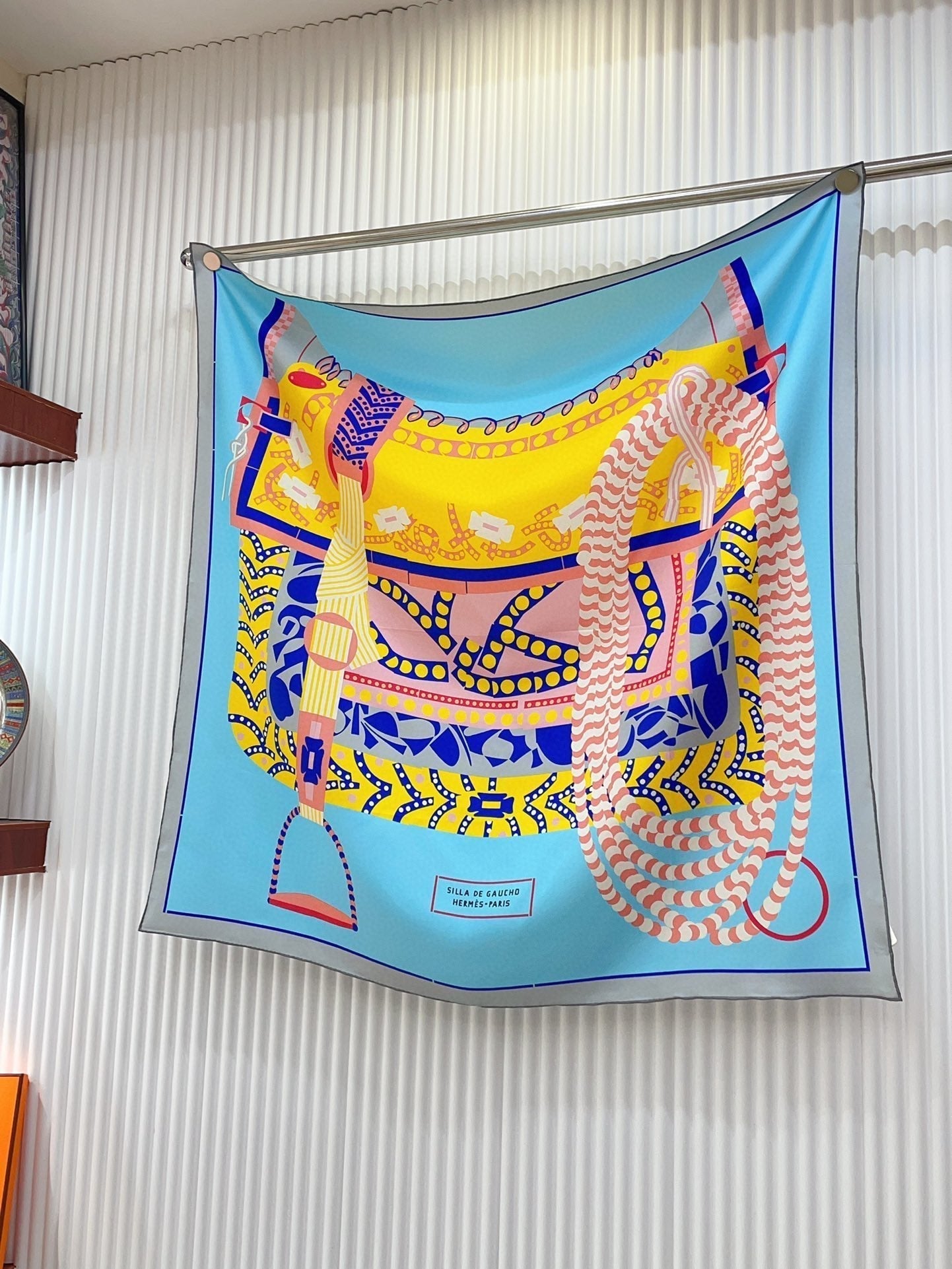 Silla De Gaucho Scarf 90 CM In Light Blue Colorful Silk Twill 231854
