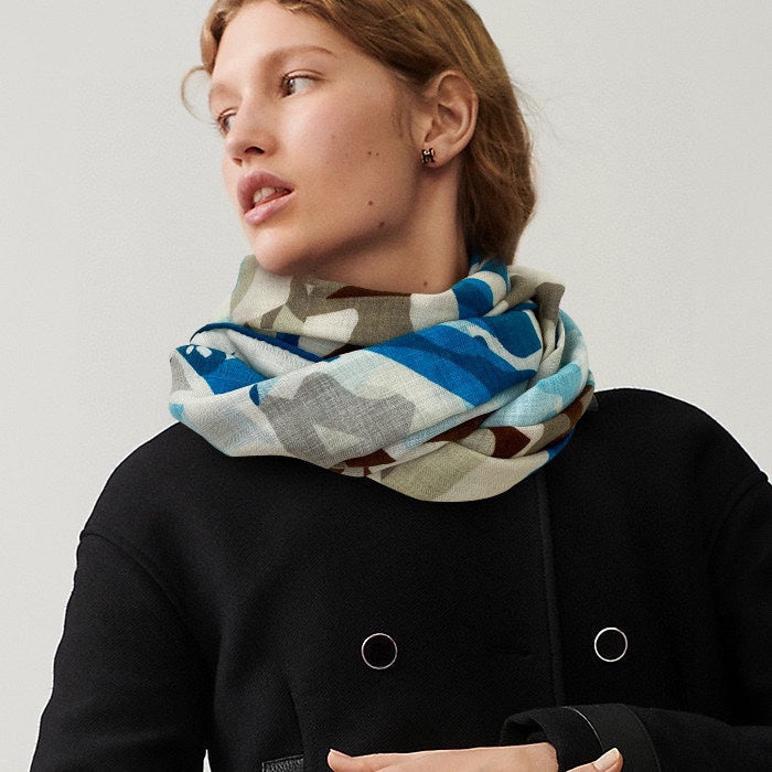 Scarf 190 CM In White Beige Mix Black Blue Cashmere
