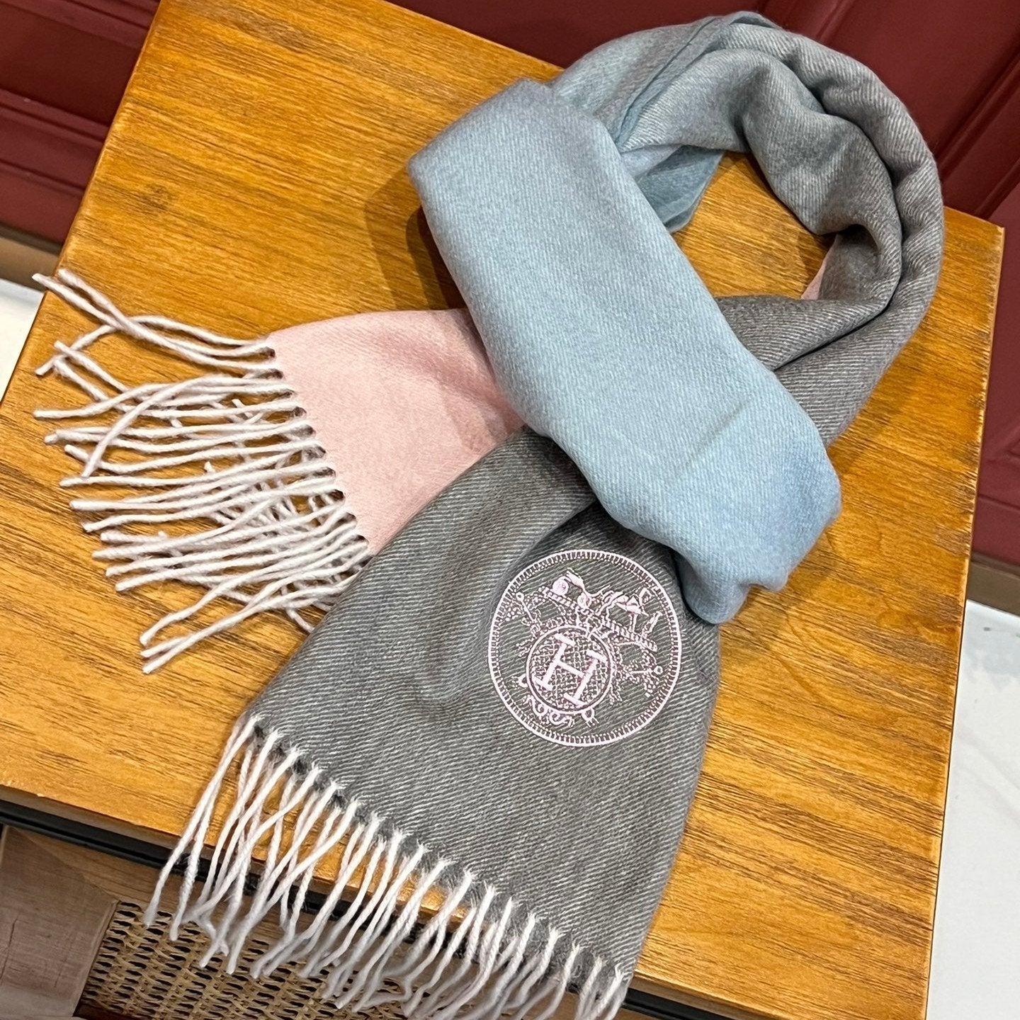 Scarf 190 CM In Grey Pink Mix Light Blue Cashmere