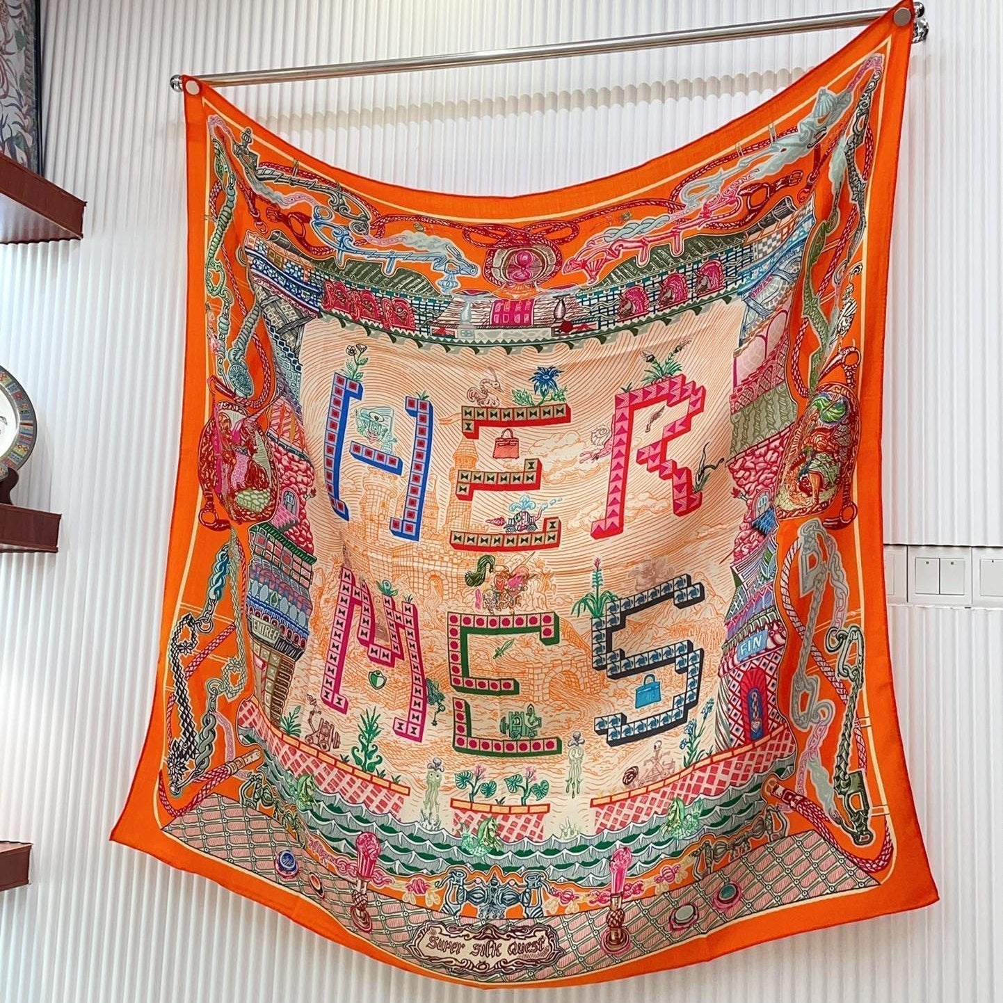 Fantaisie d'Etriers Shawl 135 CM Orange Colorful Cashmere And Silk 402081