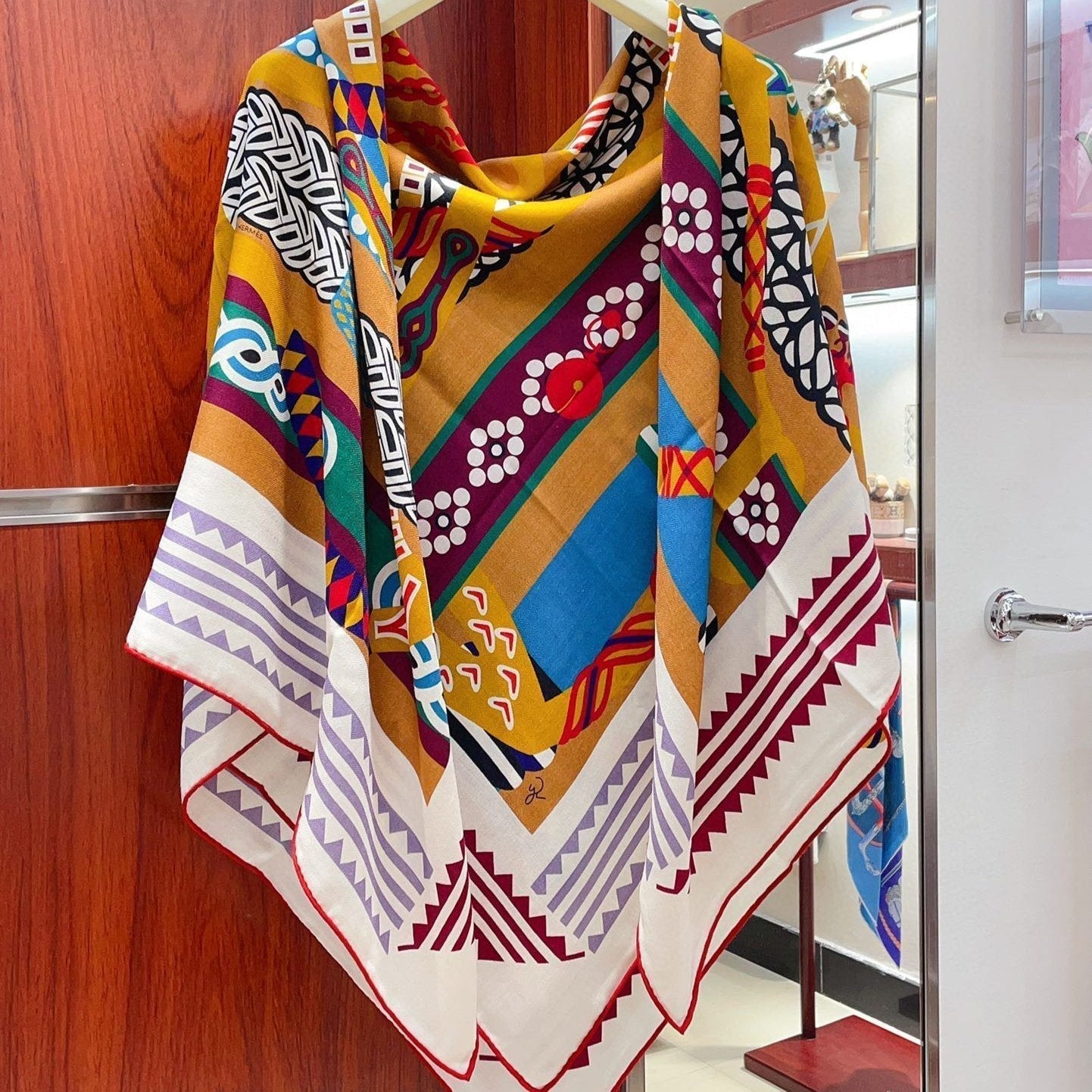 Flagship Scarf 135 CM White Colorful Cashmere And Silk 402079