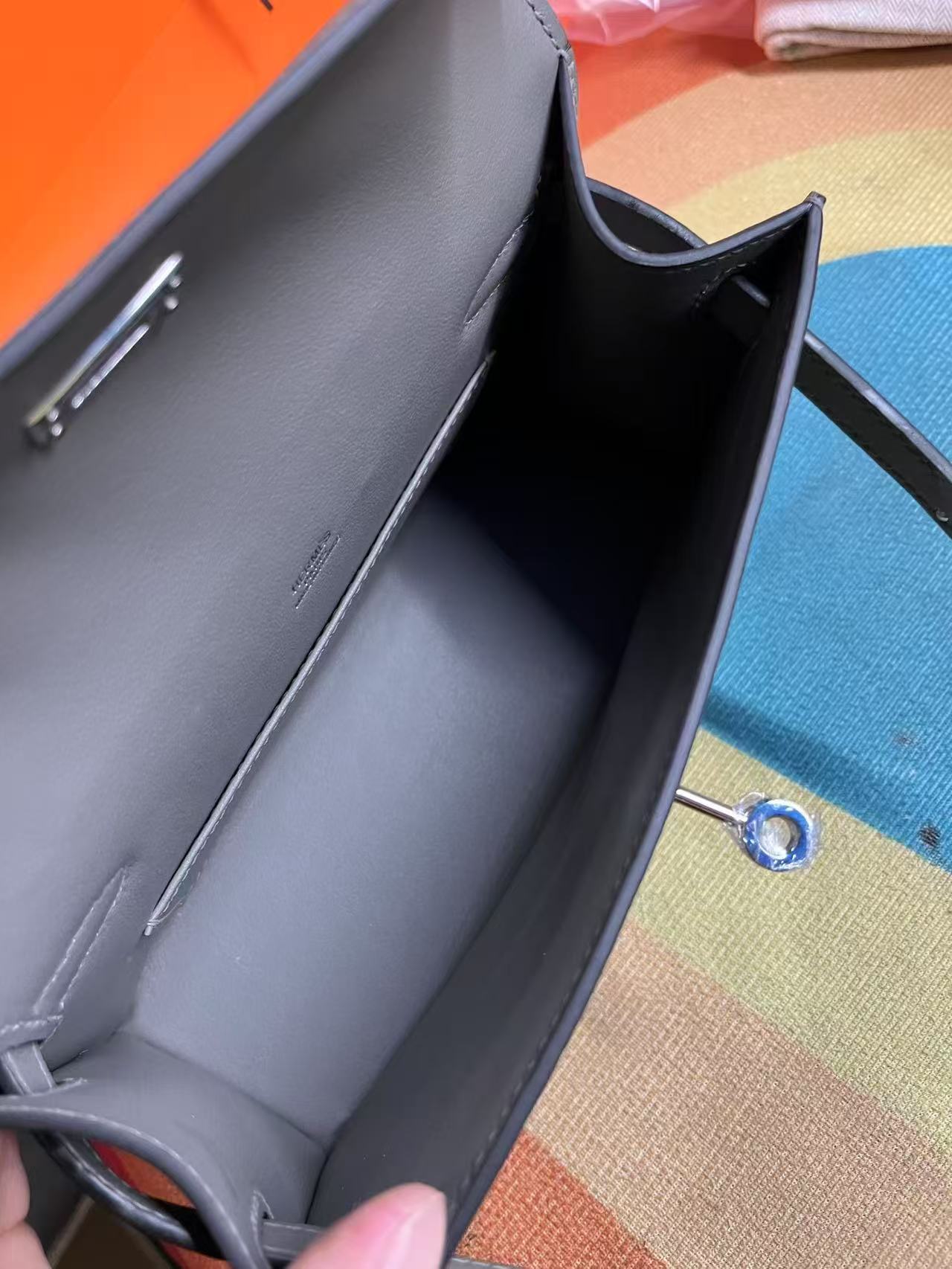 HM KELLY MINI POCHETTE 22 IN GREY CALFSKIN