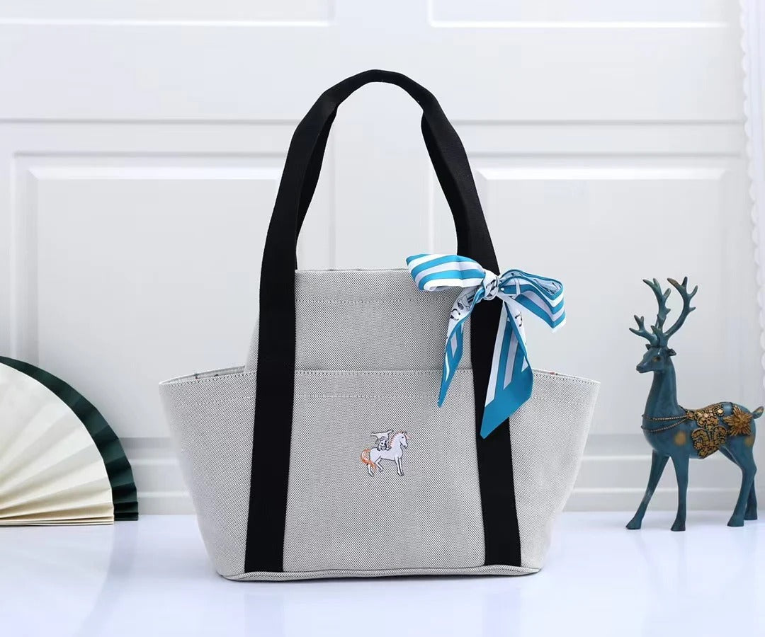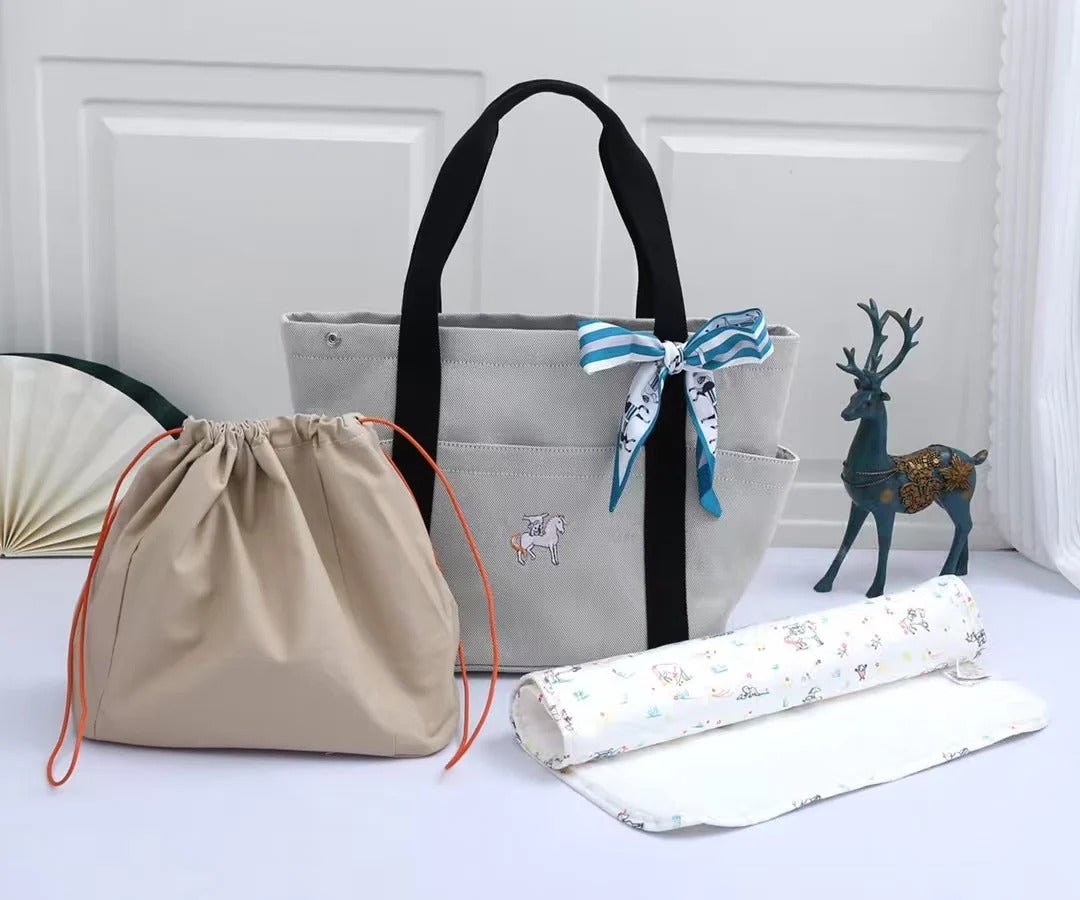 Hermes 2025 Cabriole Nappy Bag Light Gray mix Black Cotton