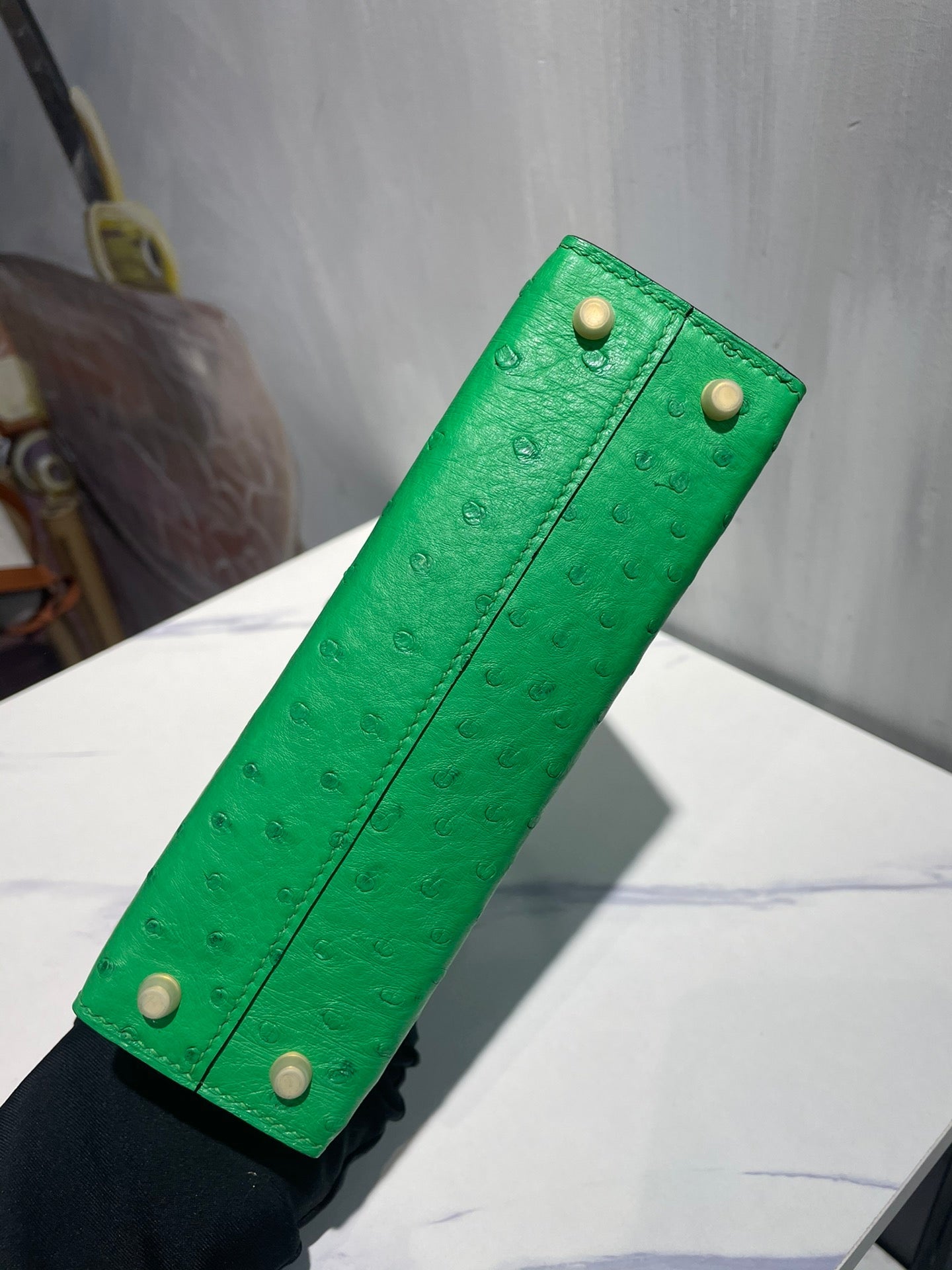 Hermes Kelly 19 Sellier Green Ostrich Leather Bag GHW (need 25 day to produce) 270333