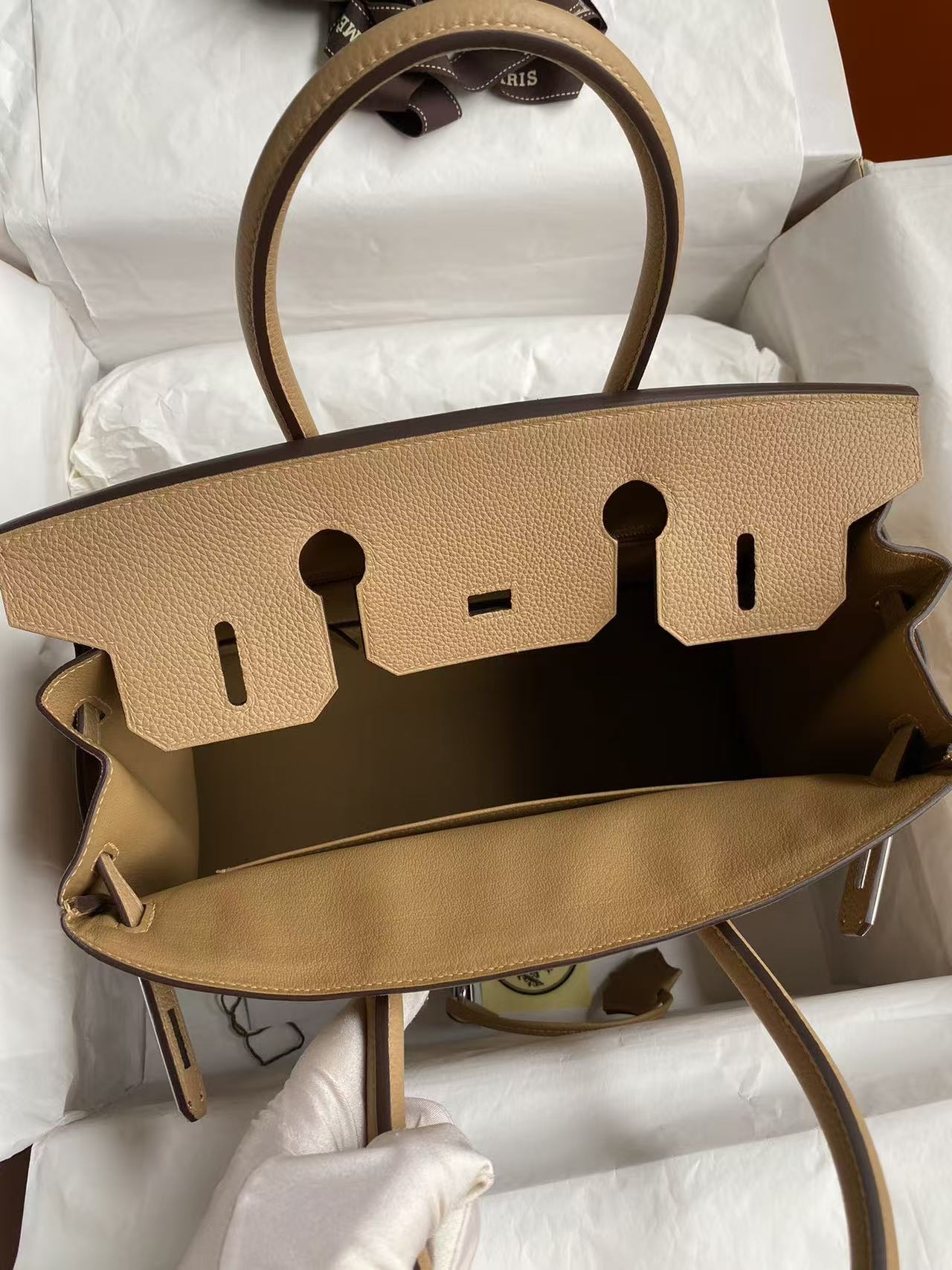 HM BIRKIN 25CM BEIGE TOGO LEATHER SLIVER HARDWARE