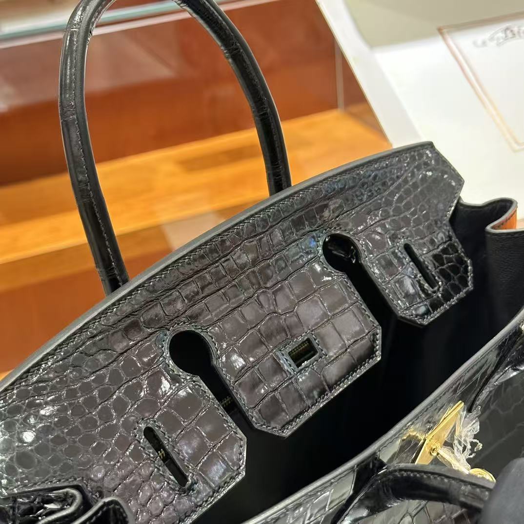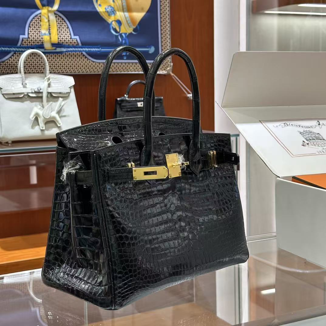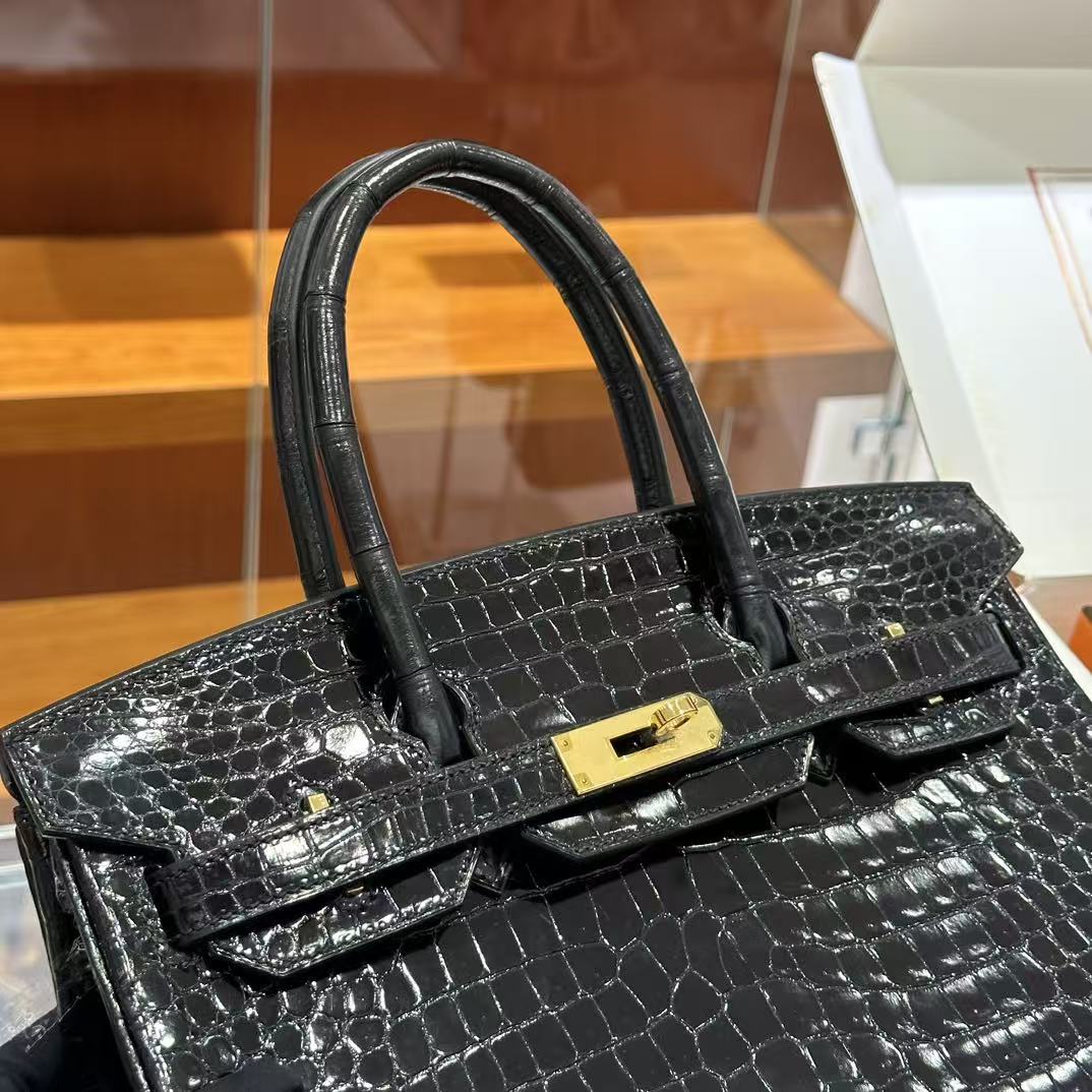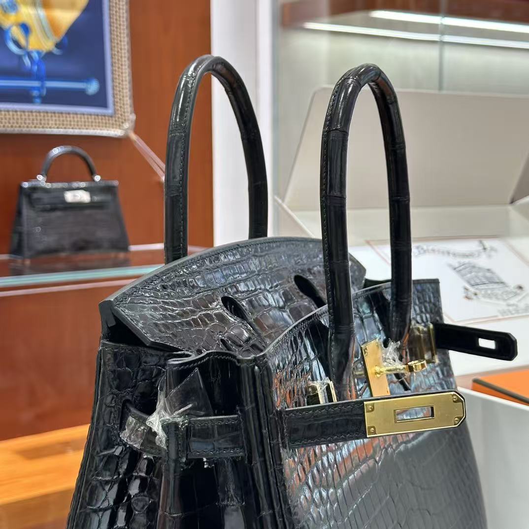 HM Birkin 30 Bag Black Shiny Crocodile Leather GHW (12 days of production)