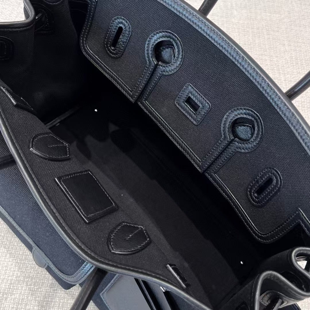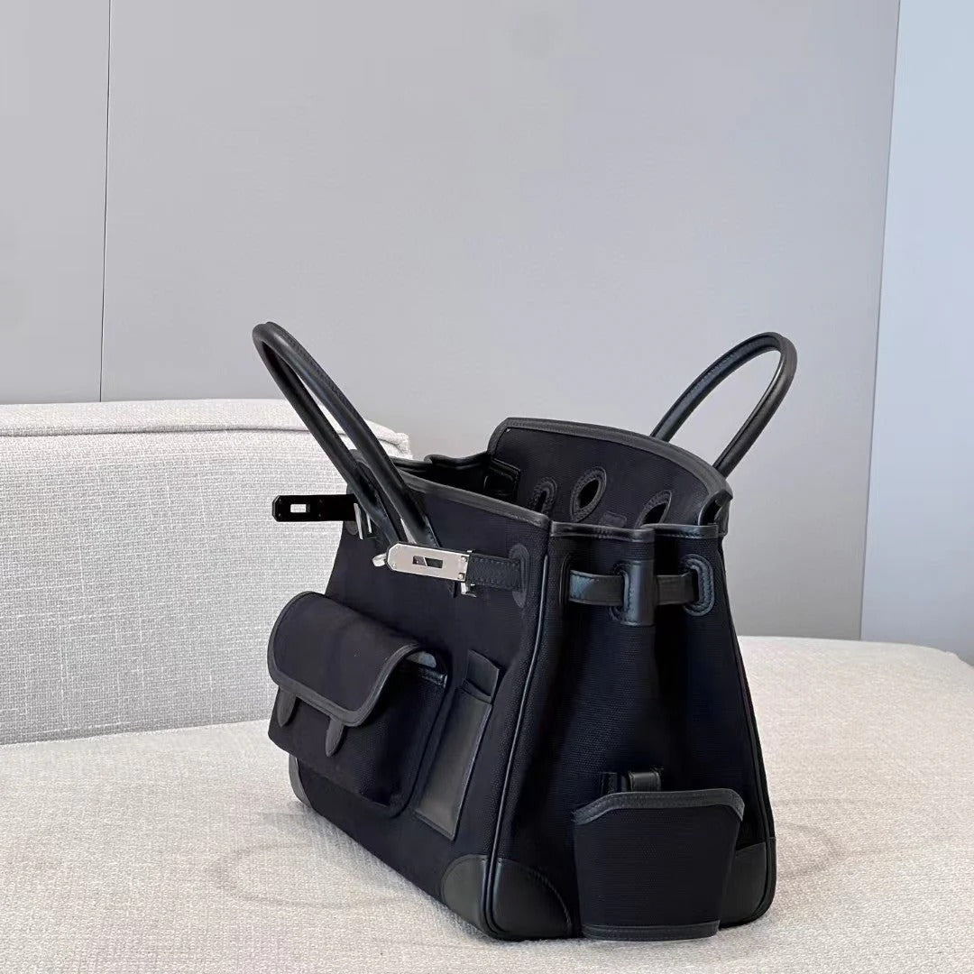 HM Birkin Cargo 35cm Black Sesame Swift and Canvas Silver Hardware