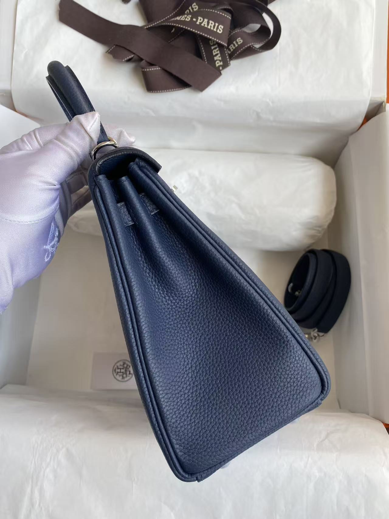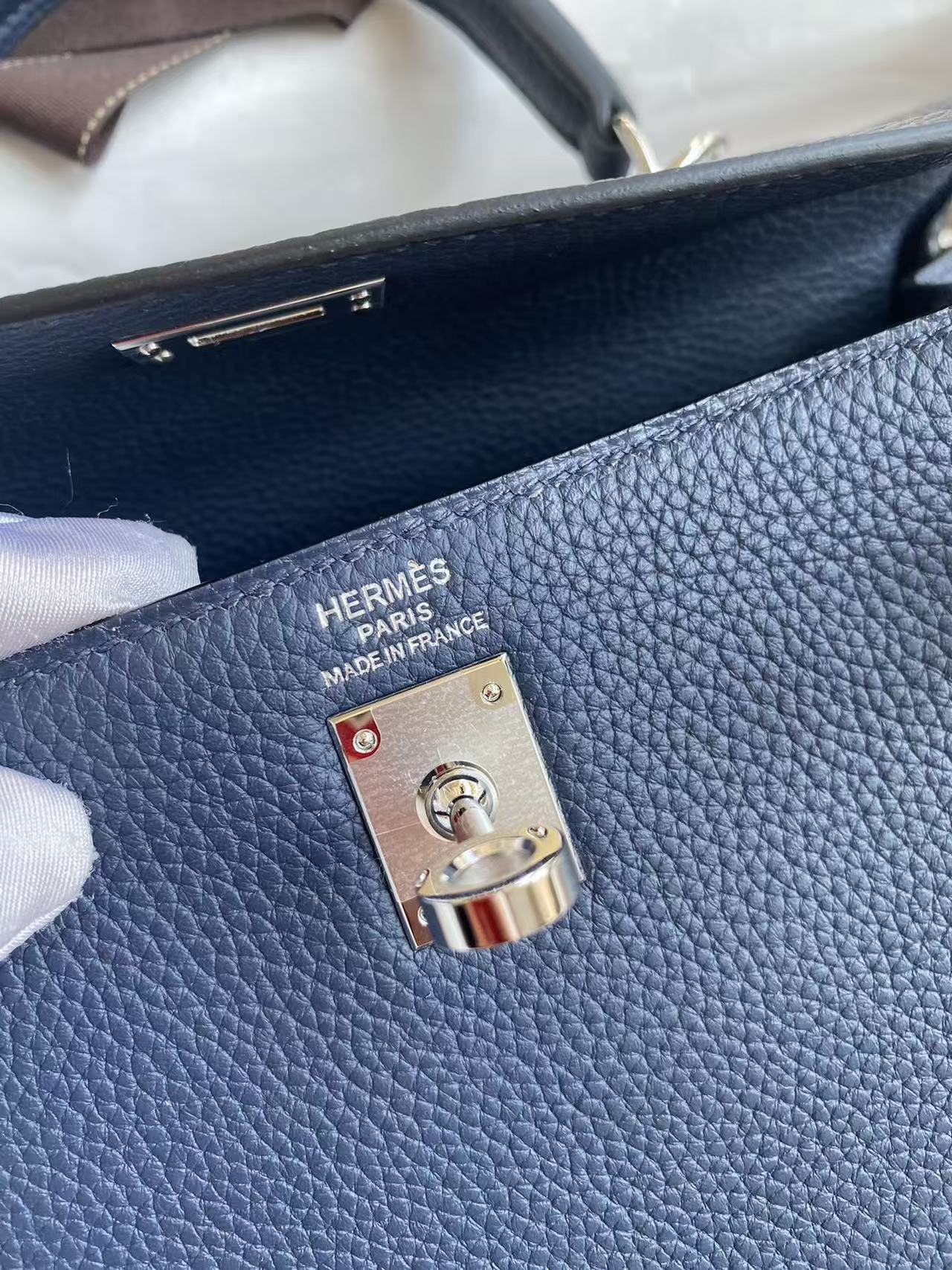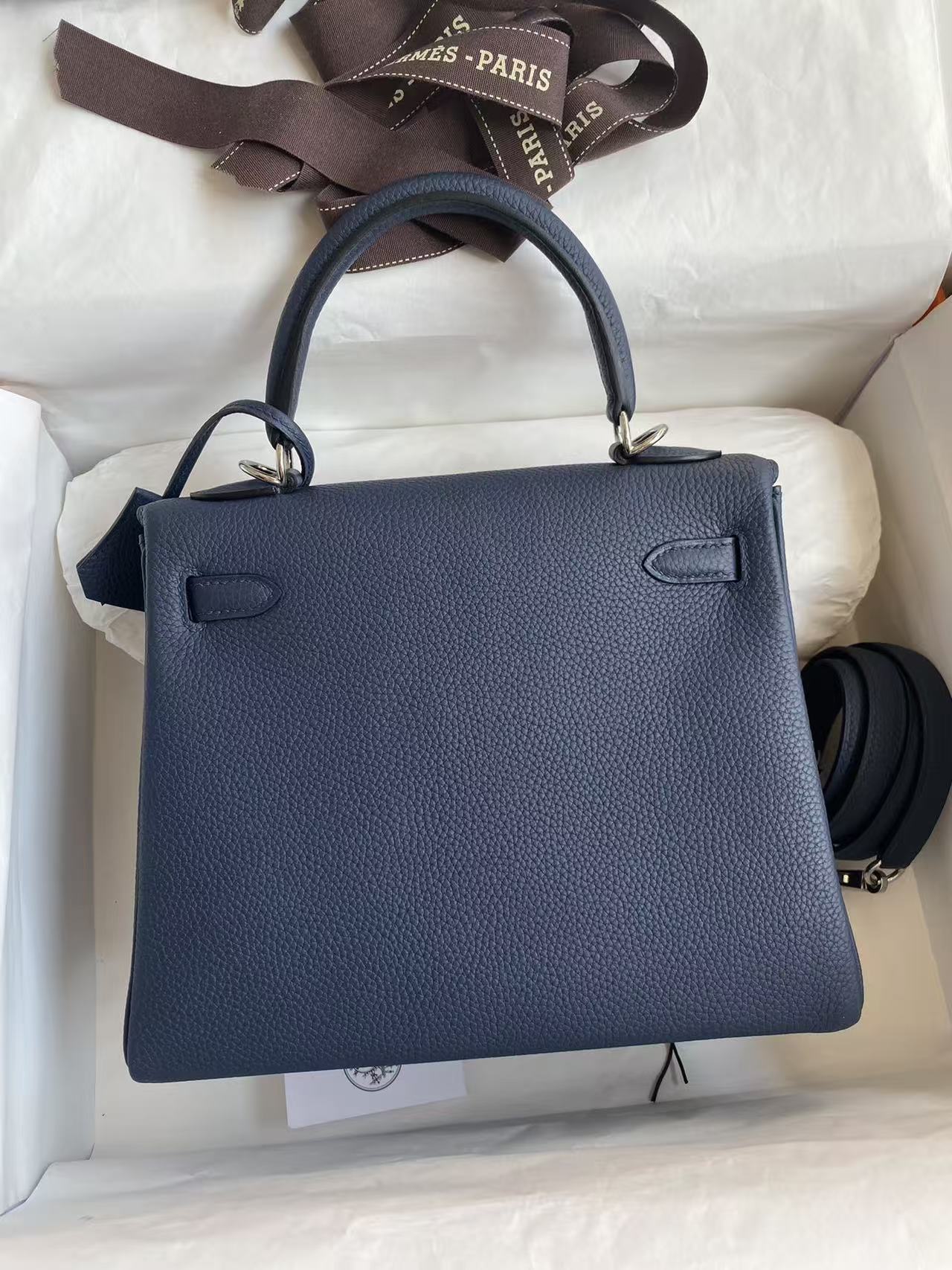 HM Kelly Bag 25cm Dark Blue Togo Leather SHW