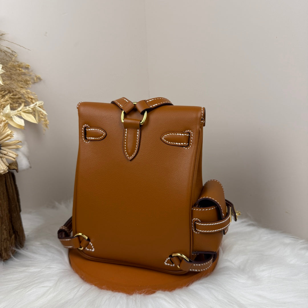 HM Kelly Jump Backpack Brown Cowhide Gold Hardware 270048