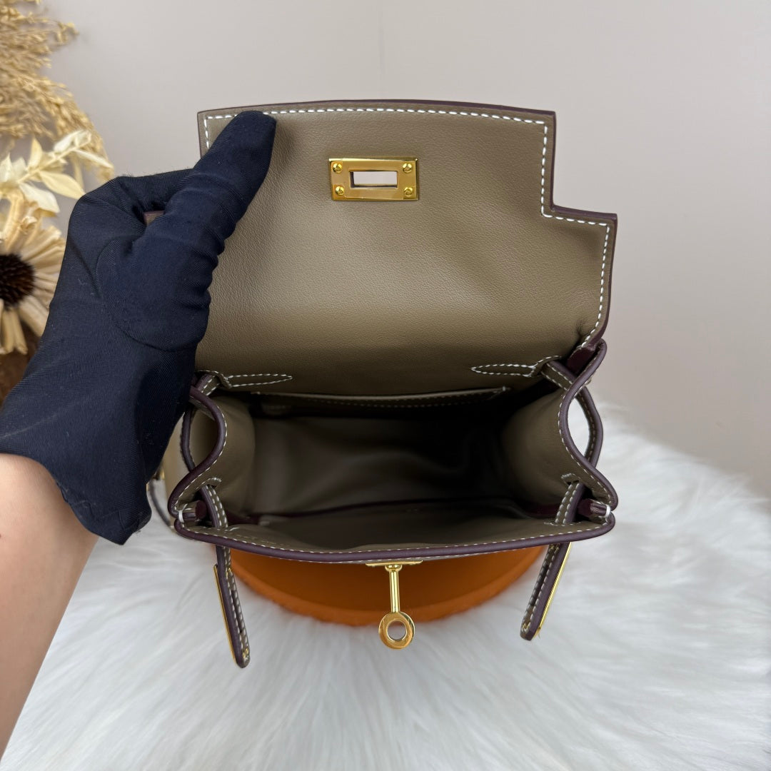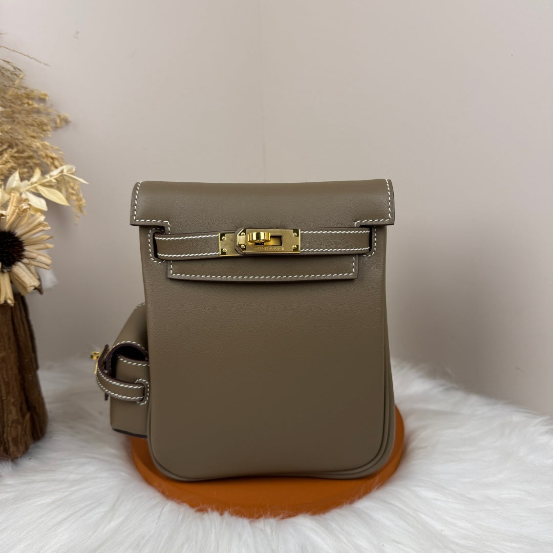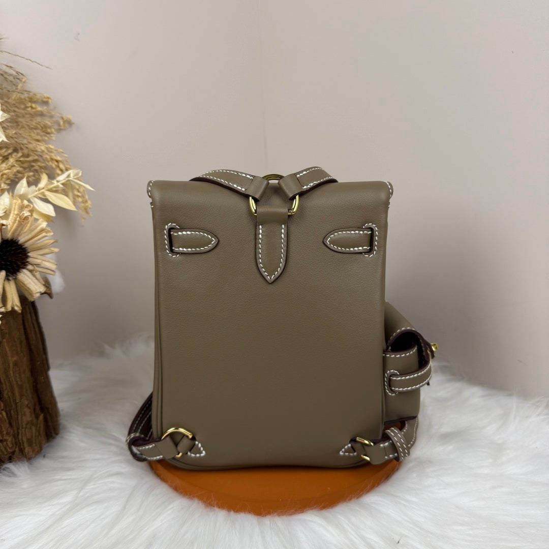 HM Kelly Jump Backpack Taupe Brown Cowhide Gold Hardware 270040