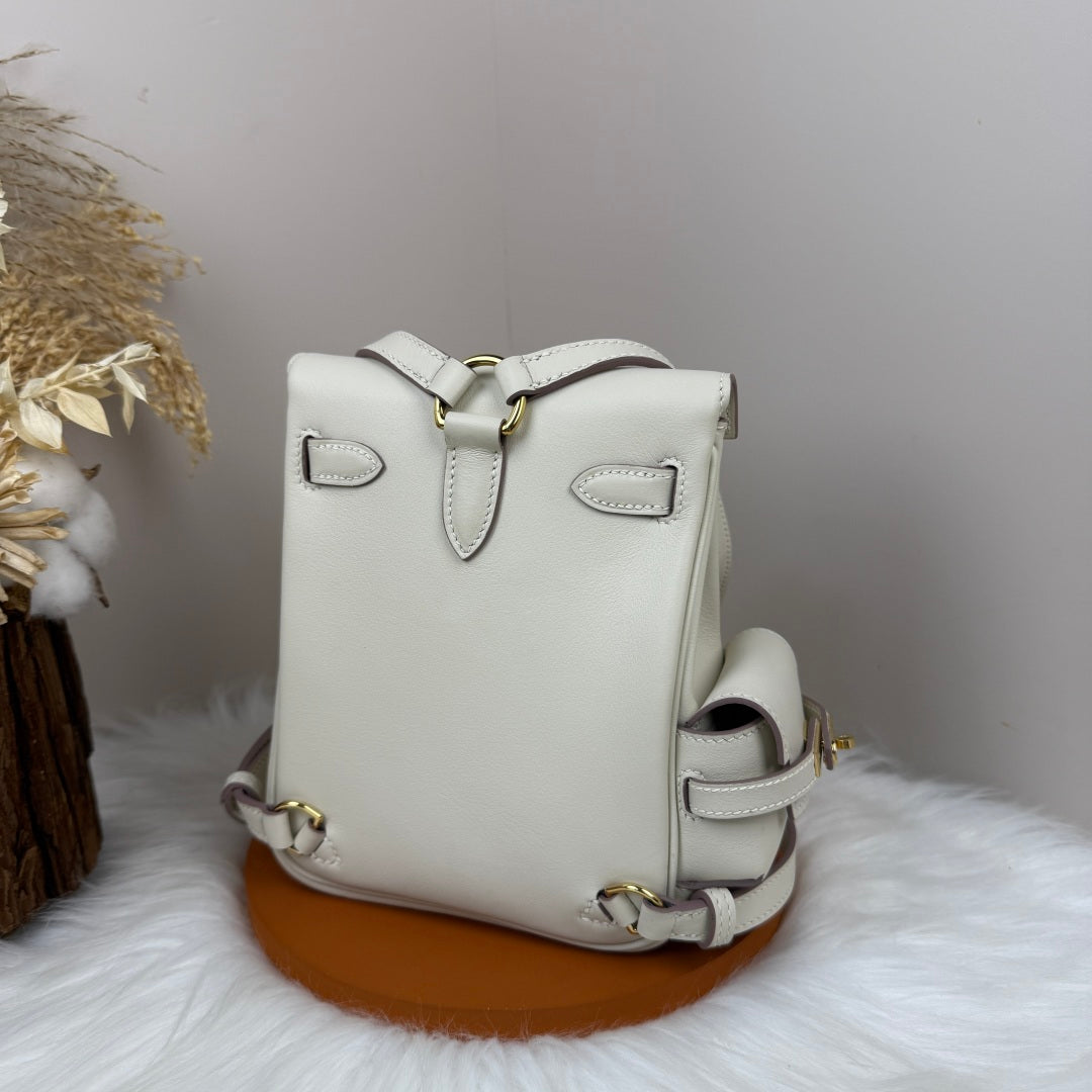 HM Kelly Jump Backpack White Cowhide Gold Hardware 270036