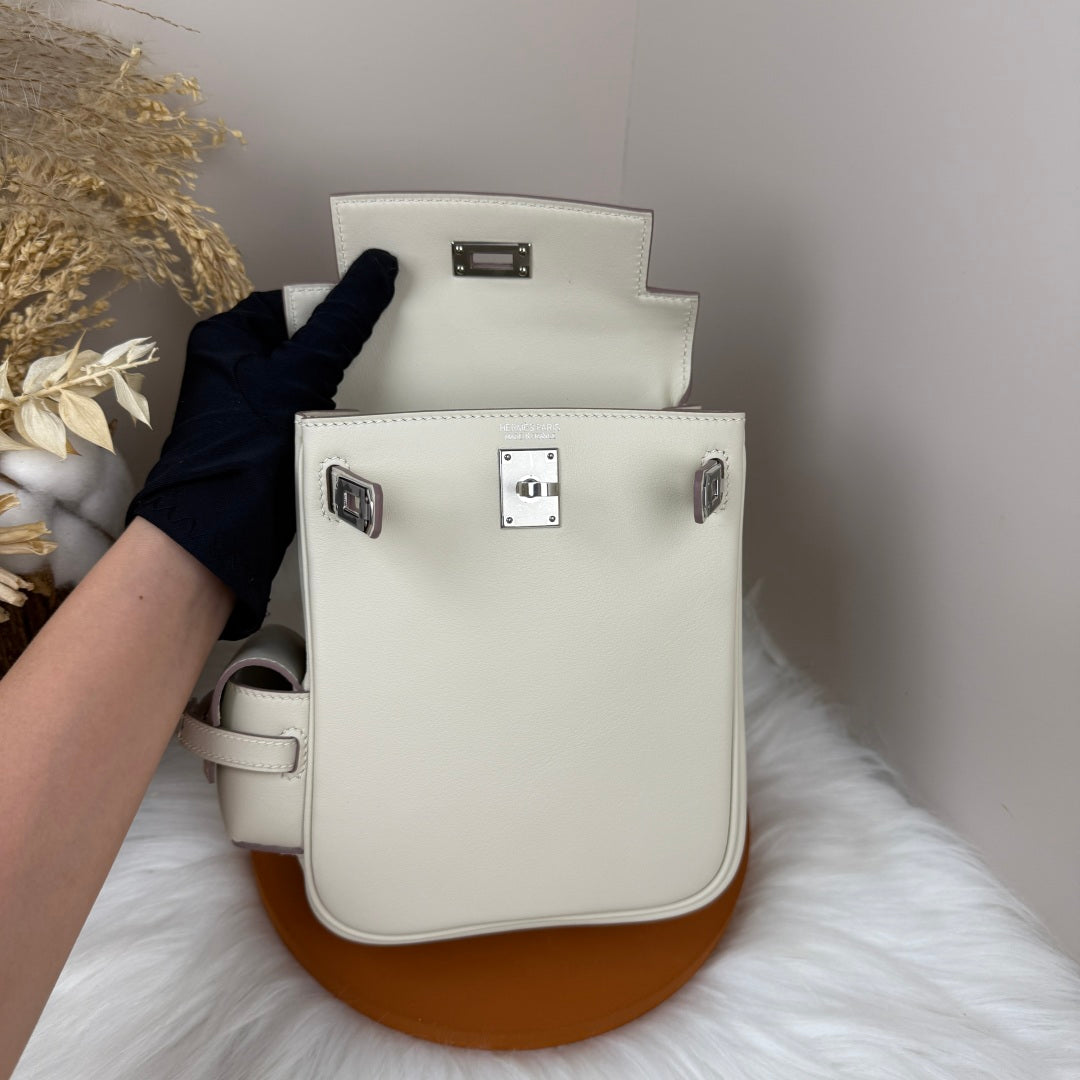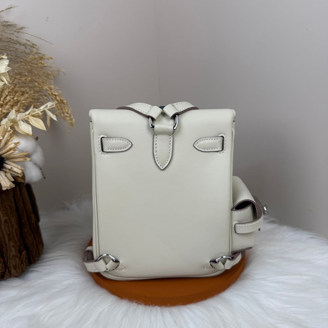 HM Kelly Jump Backpack White Cowhide Sliver Hardware 270038
