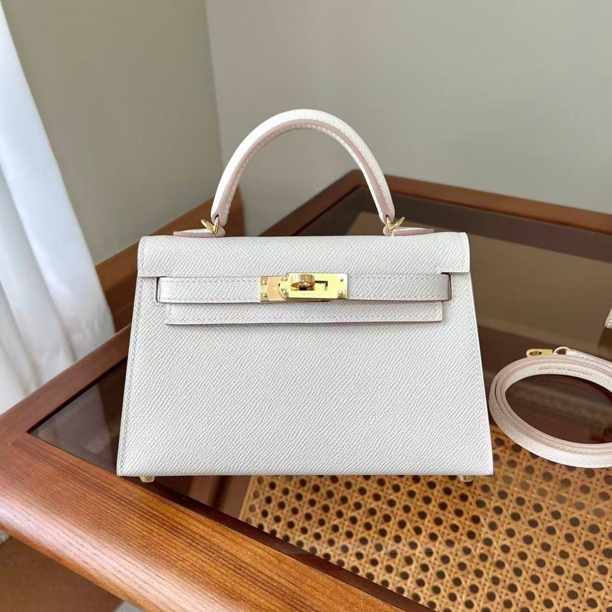HM KELLY MINI 20 WHITE EPSOM GOLD HARDWARE