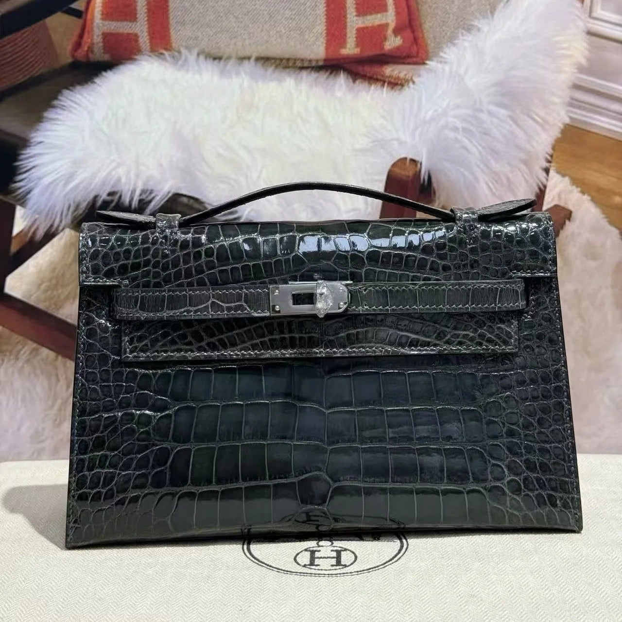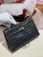 HM KELLY MINI 22 IN BLACK AMERICAN ALLIGATOR SILVER BUCKLE