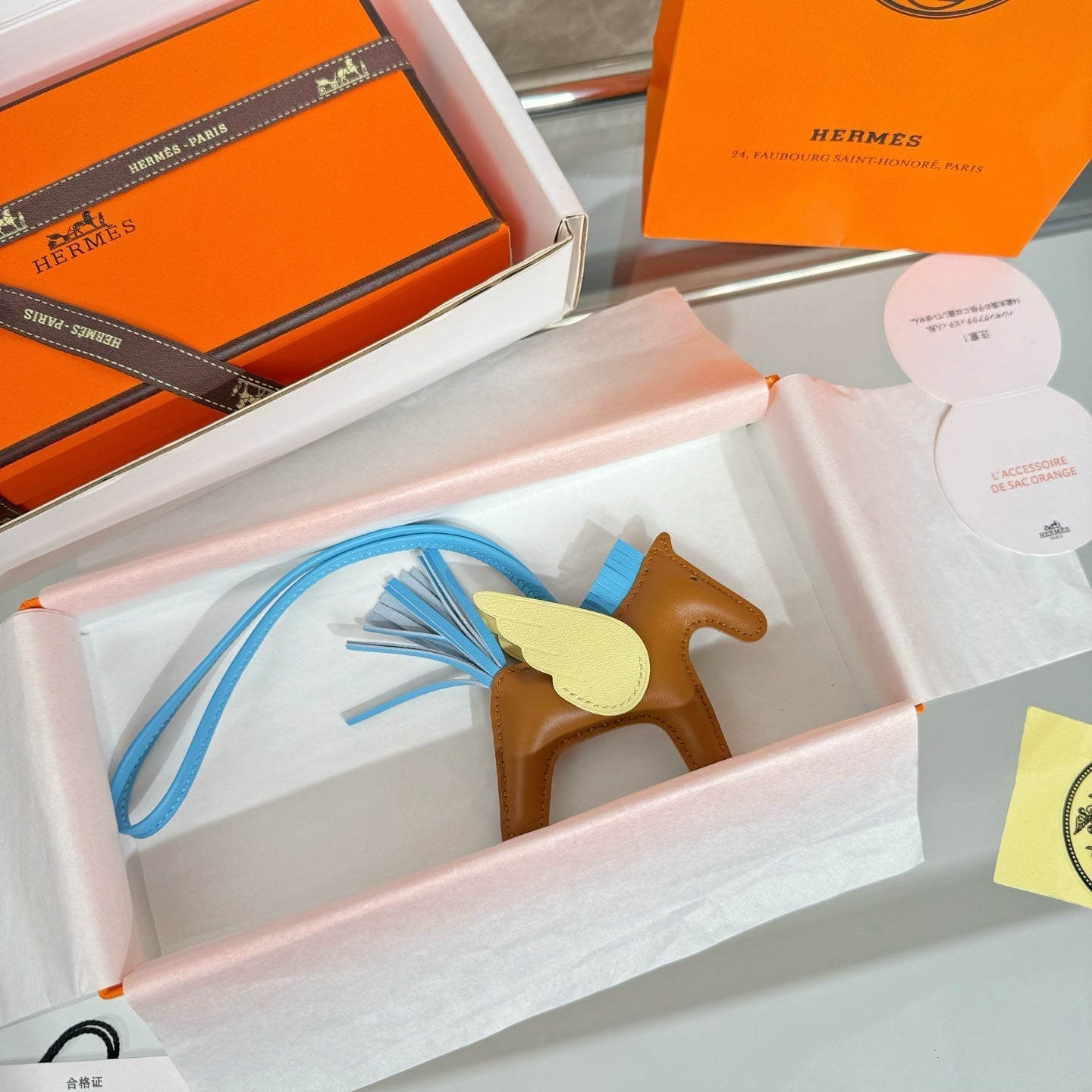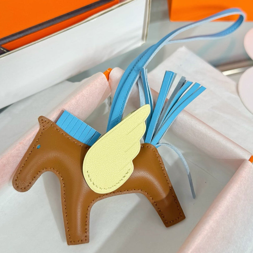 HM Rodeo Pegase PM Charm Brown Blue Yellow Lambskin