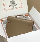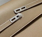 KELLY DEPECHES 38 BRIEFCASE IN ETOUPE TOGO CALFSKIN SILVER HARDWARE