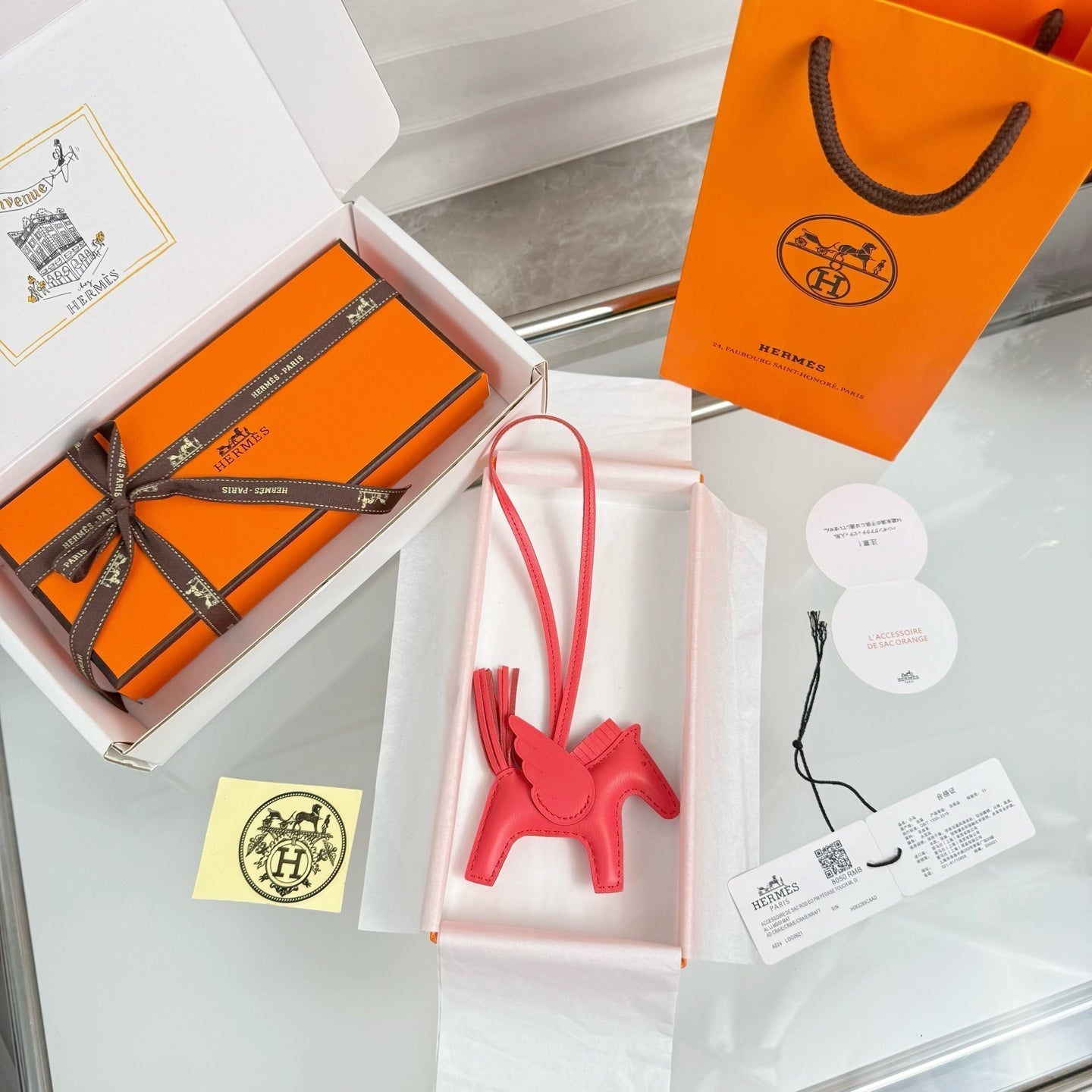 HM Rodeo Pegase Bag Charm Orange Lambskin