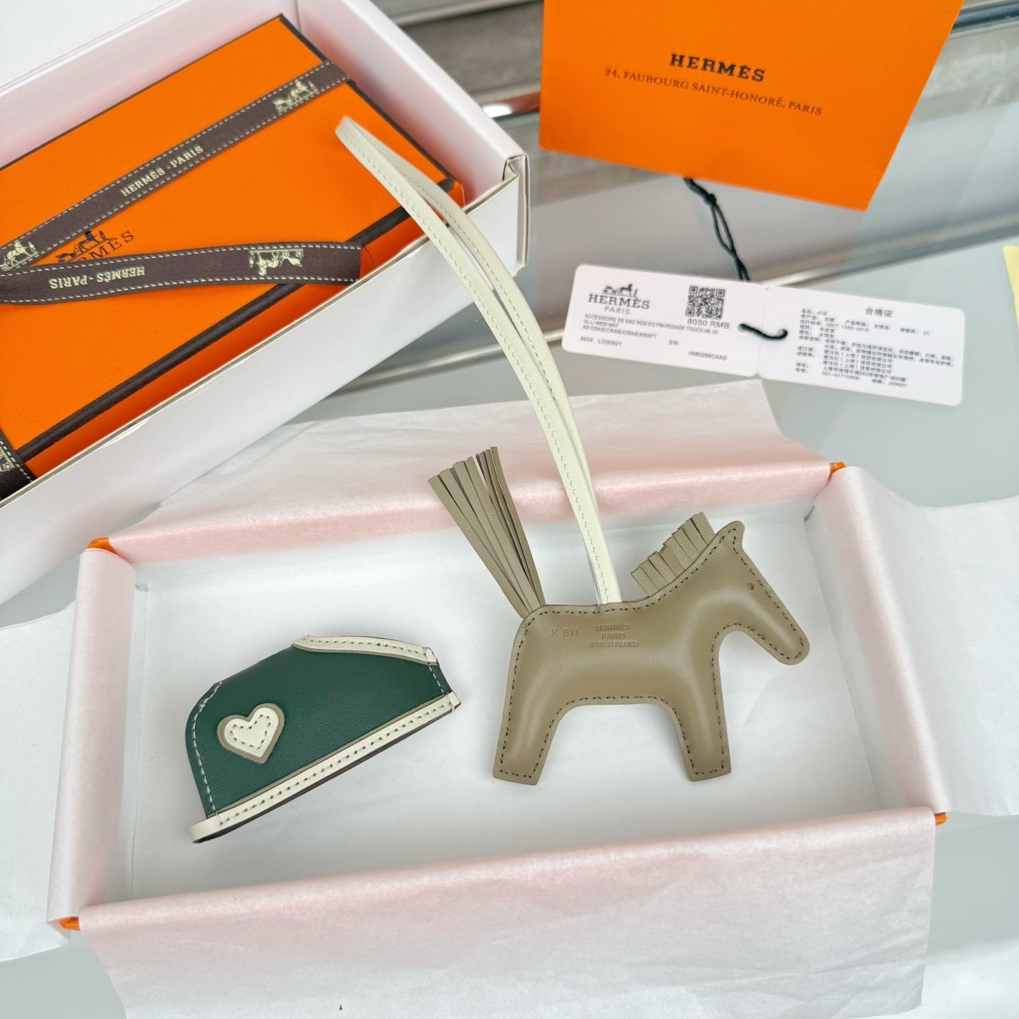 HM Horse Head Charm White Taupe Calfskin
