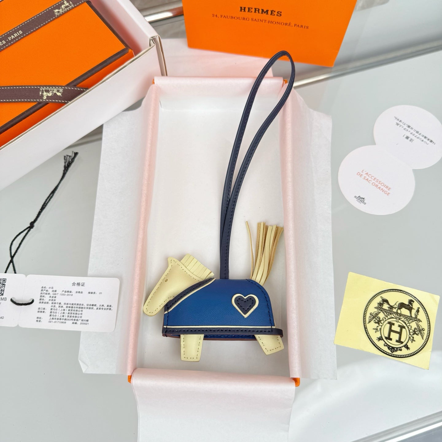 HM Horse Head Charm Blue Yellow Calfskin