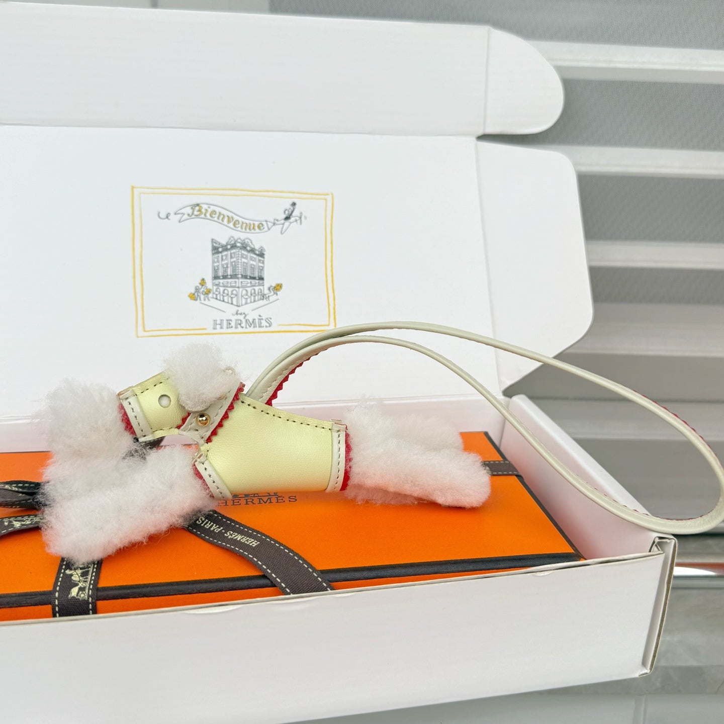 HM Budy Puppy Pendant Charm White Light Yellow Wool Cowhide