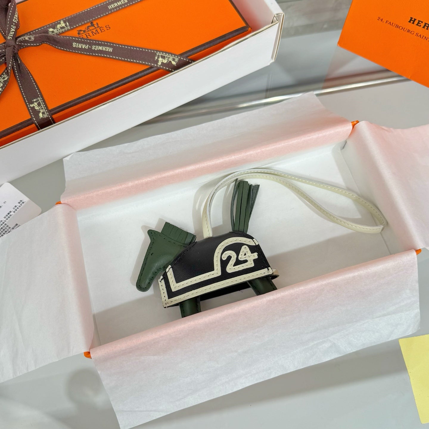HM Horse Head Charm Black White Calfskin