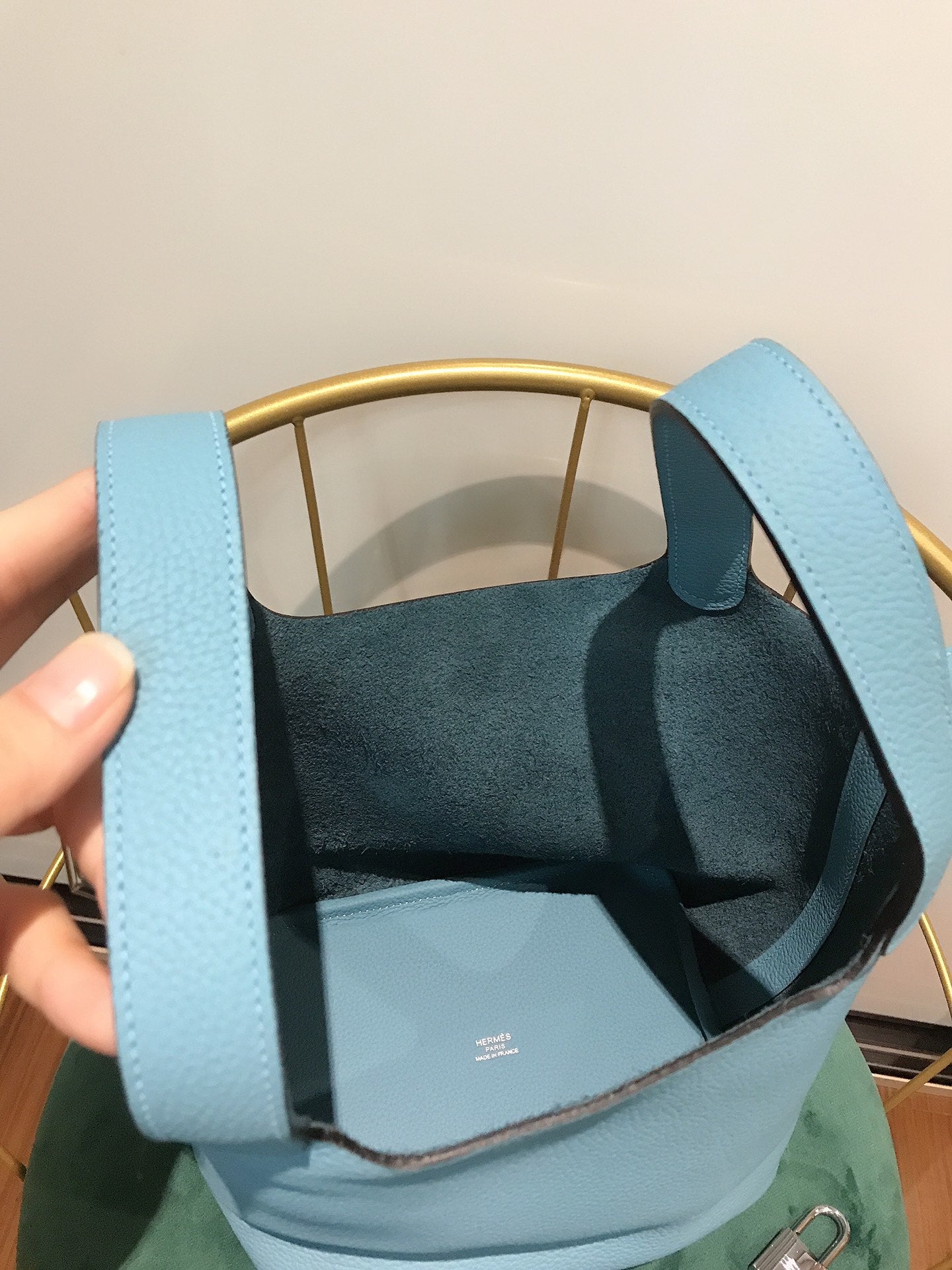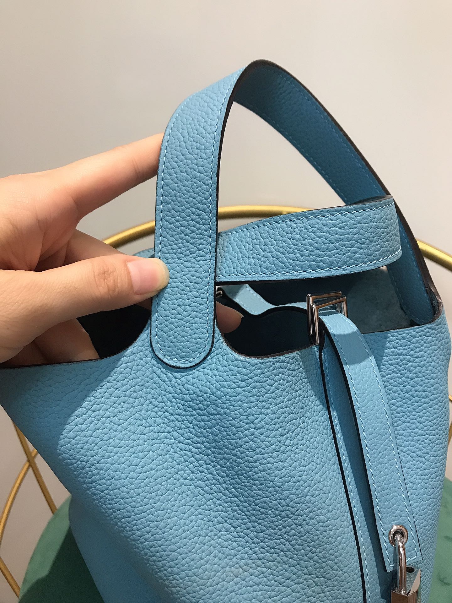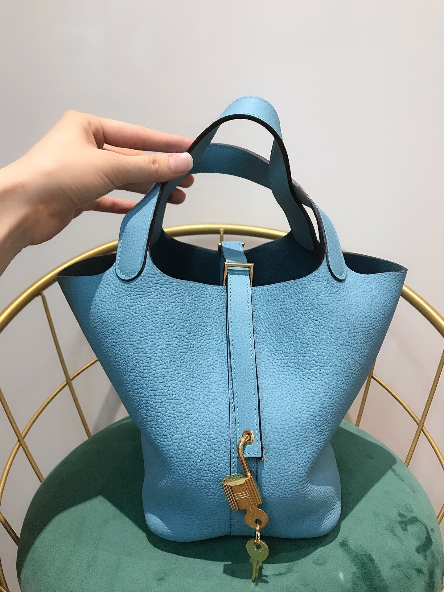 HM KELLY 28CM BLUE SKY TOGO GOLD HARDWARE