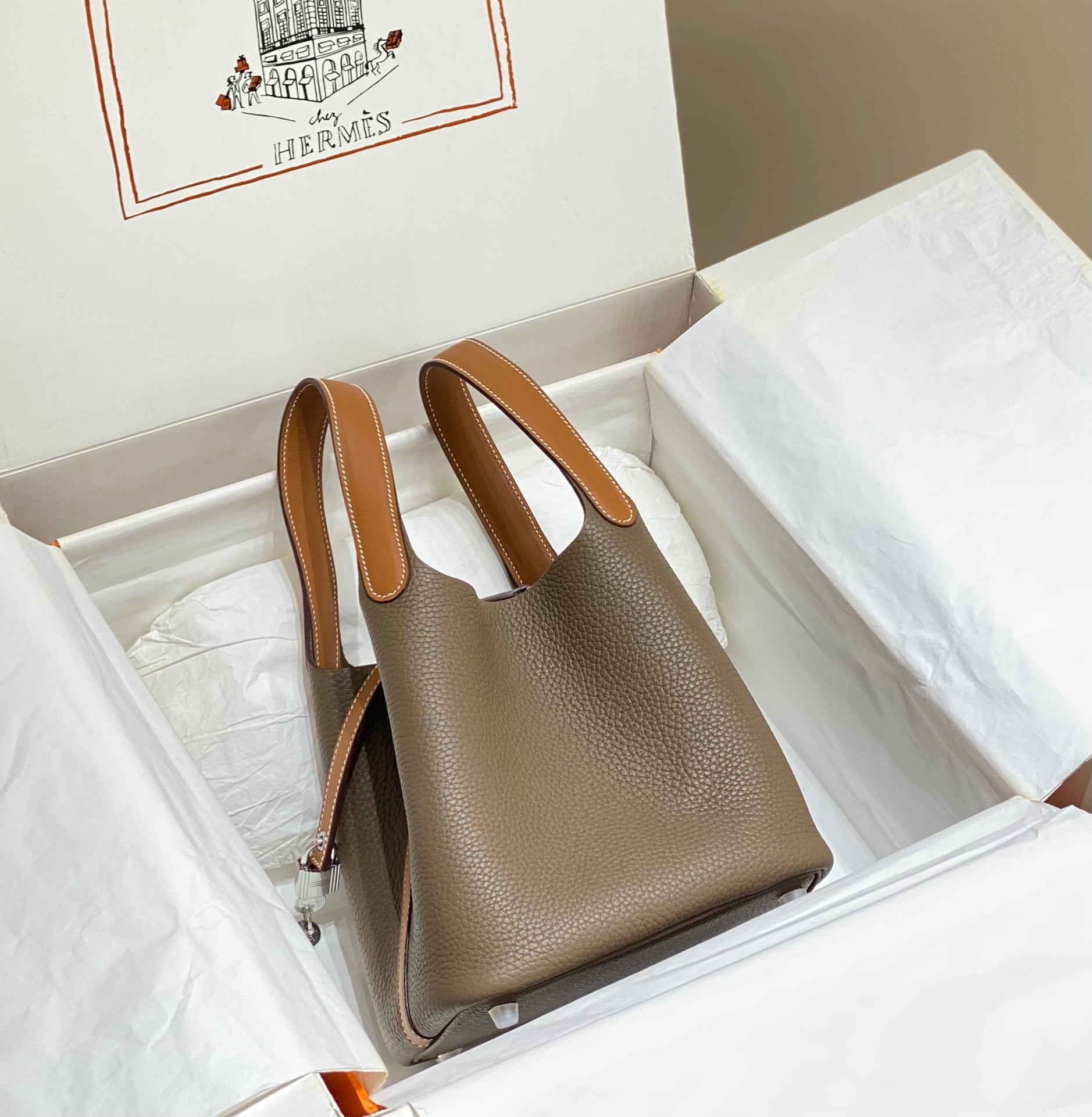 picotin lock 18 etoupe gold togo shw