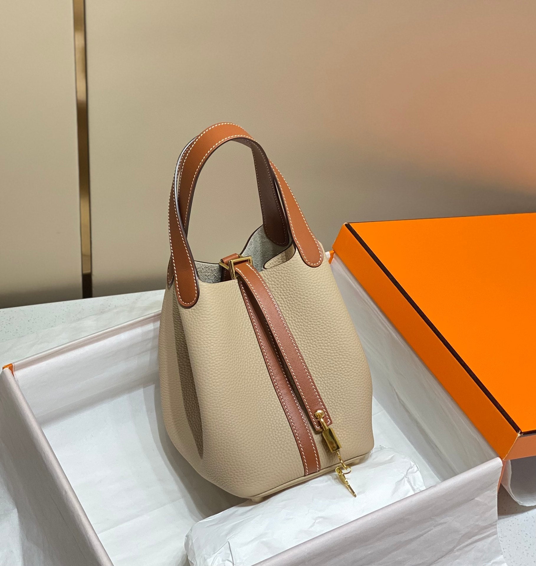 picotin lock 18 beige brown togo ghw
