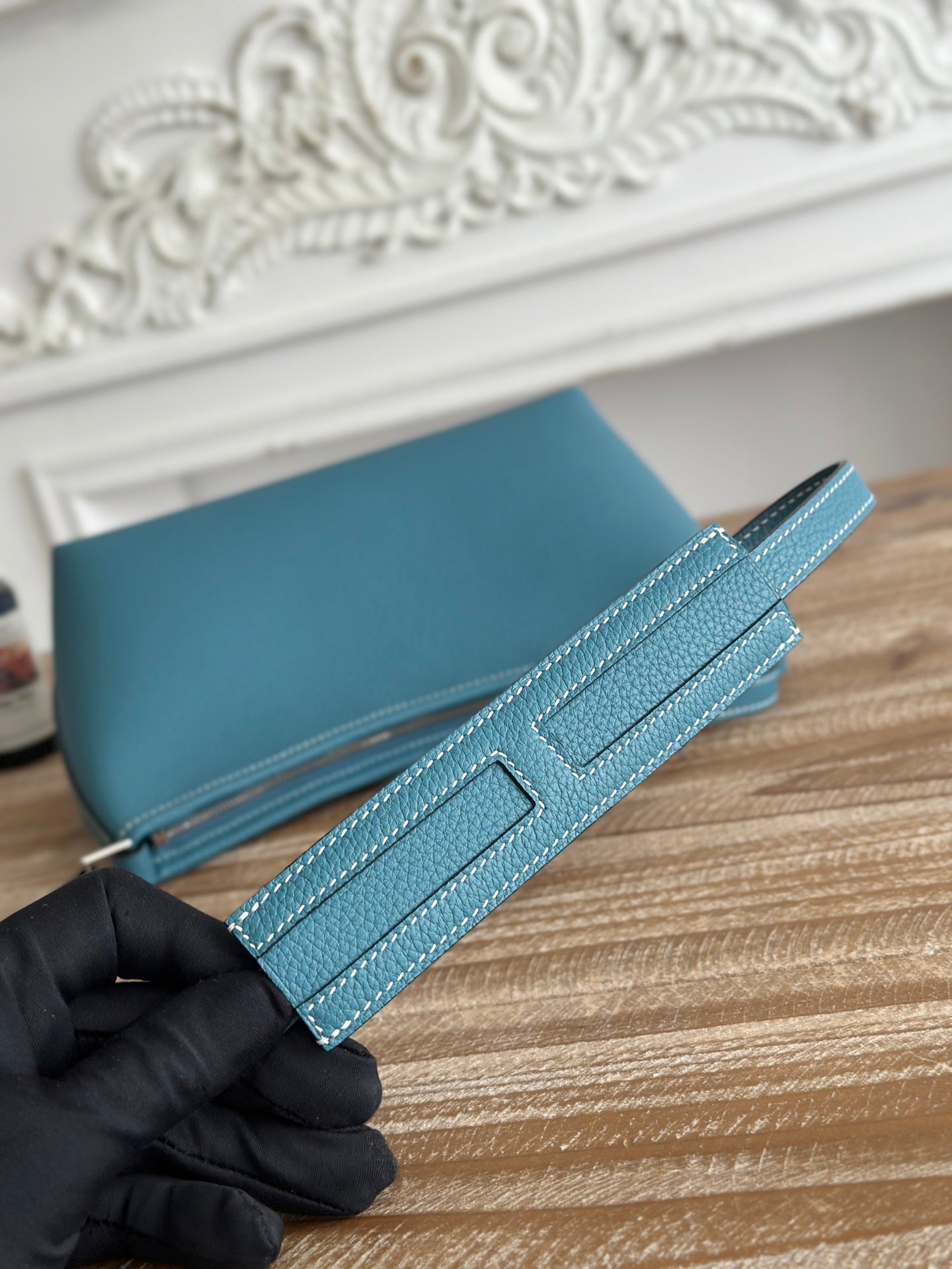 HM Berlingot Shoulder Bag Teal Blue Epsom Leather 270323