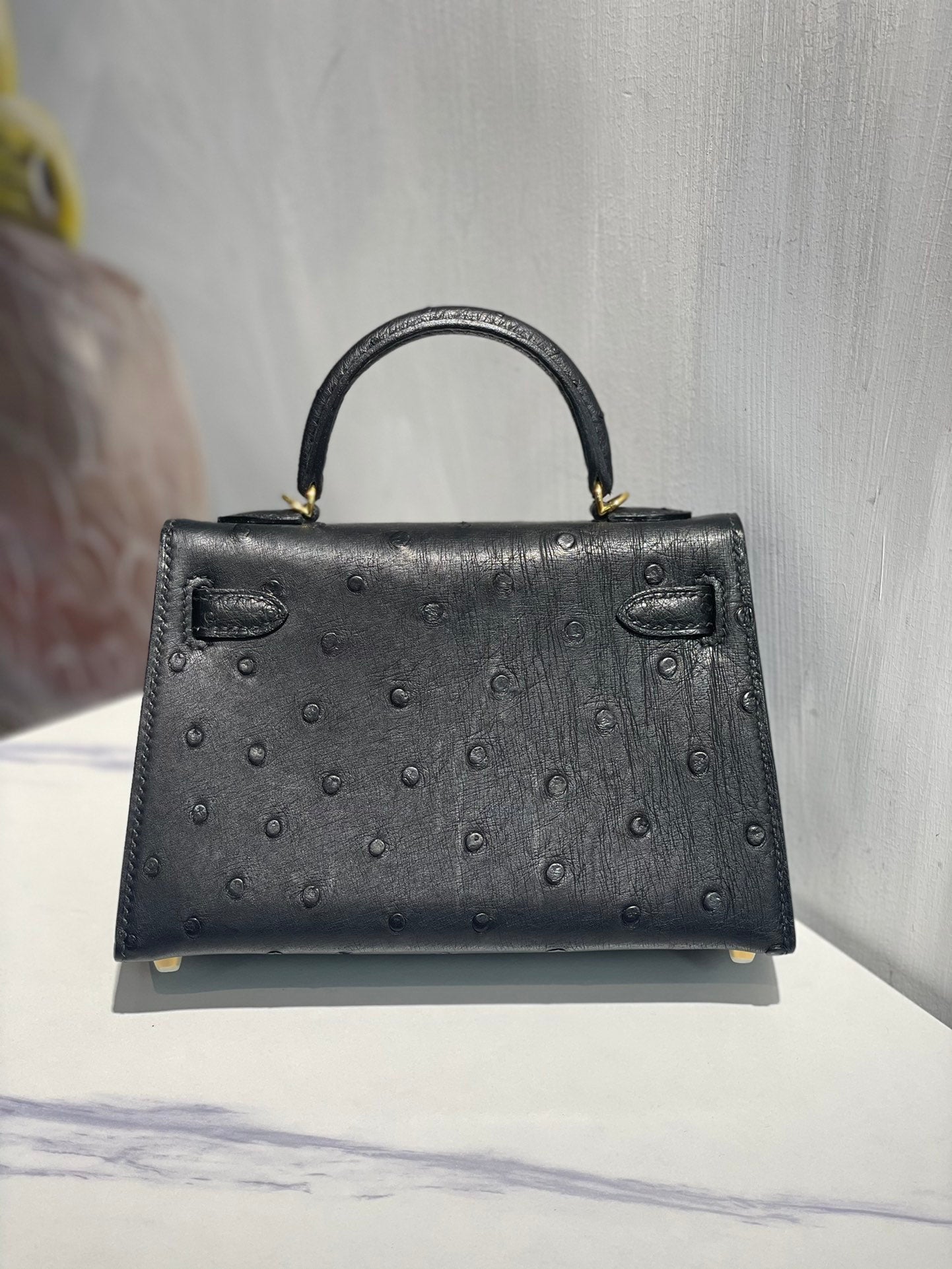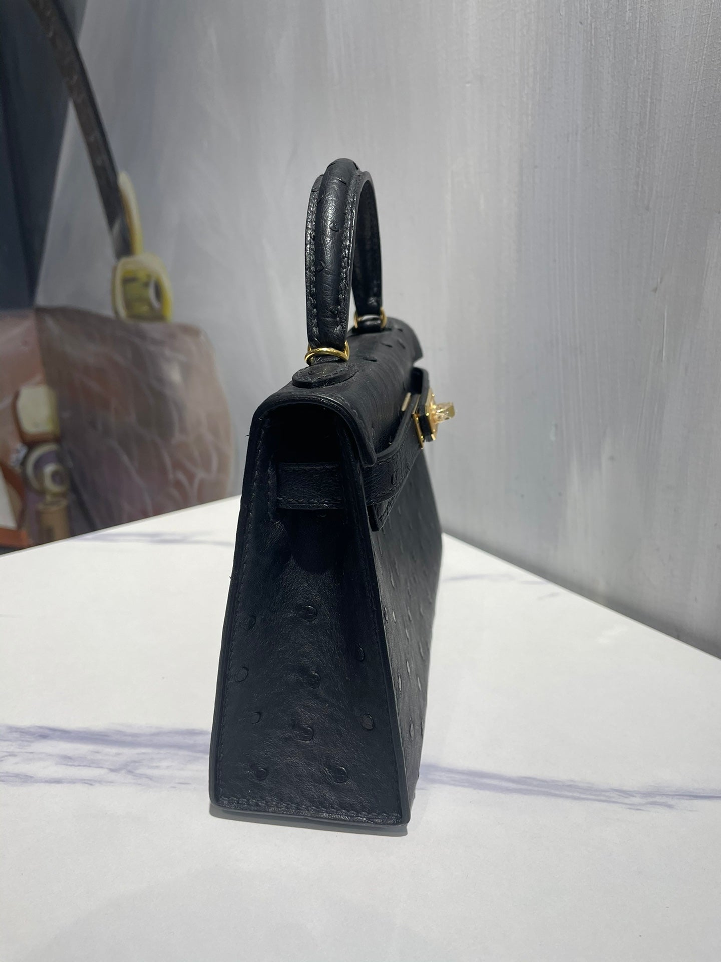 Hermes Kelly 19 Sellier Black Ostrich Leather Bag GHW (need 25 day to produce) 270332