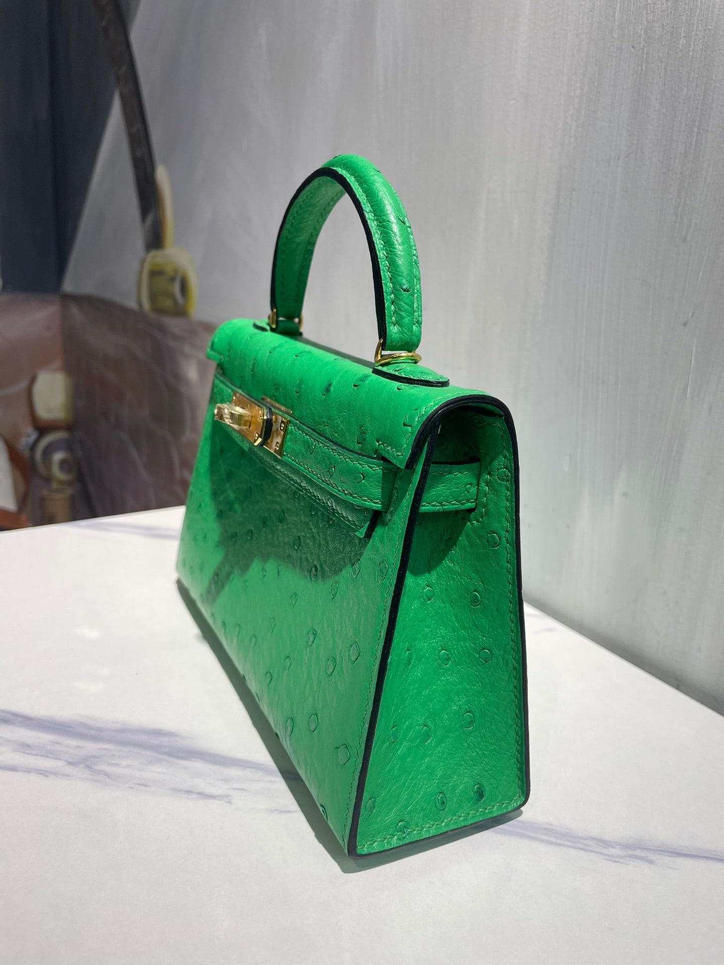 Hermes Kelly 19 Sellier Green Ostrich Leather Bag GHW (need 25 day to produce) 270333