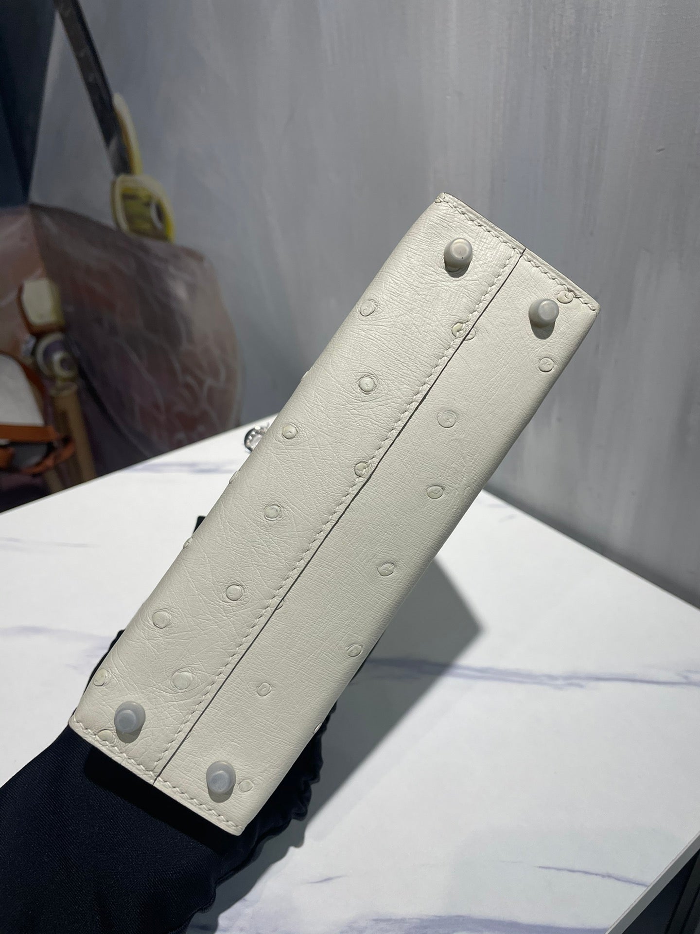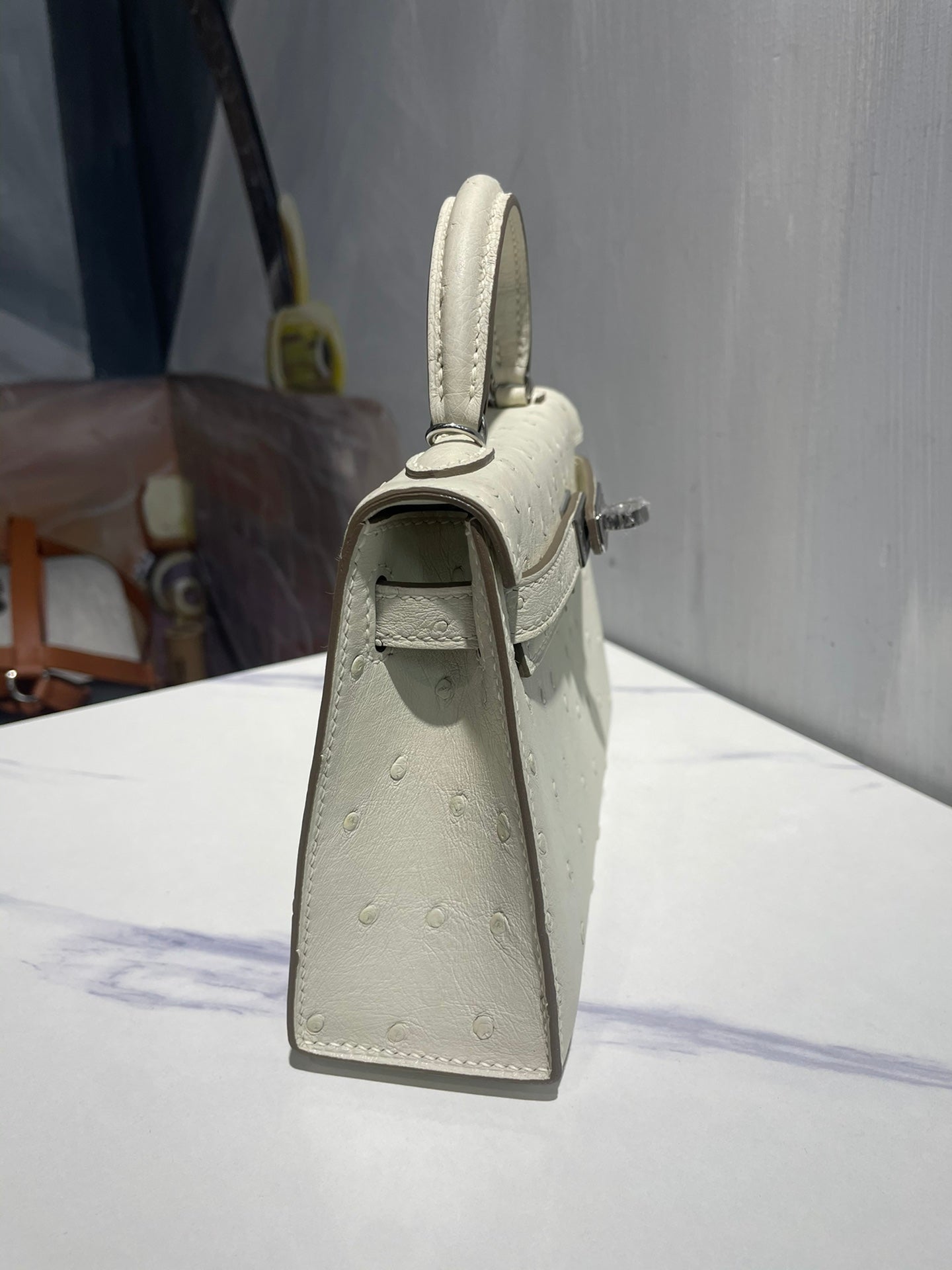 Hermes Kelly 19 Sellier Off White Ostrich Leather Bag Sliver Hardware (need 25 day to produce) 270341