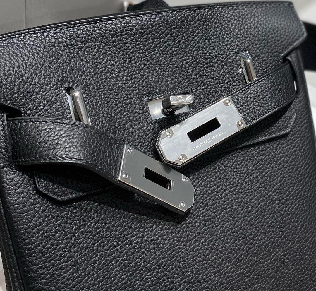 HM HAC A DOS PM 26CM BLACK TOGO LEATHER SILVER HARDWARE
