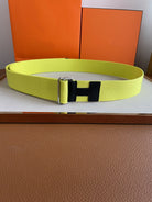 4.0CM YELLOW TEXTILE BLACK LEATHER H BELT