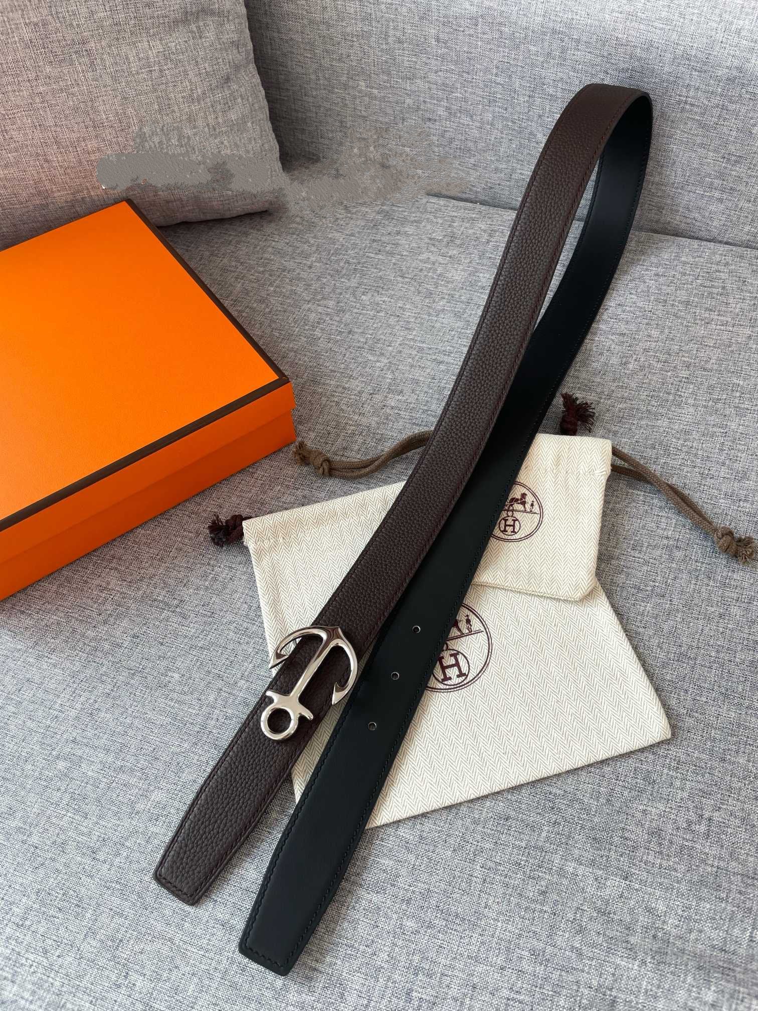 H CARGO BELT 32MM CHOCOLATE BLACK LEATHER