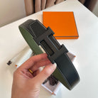 H CONTANCE BELT 38MM BLACK BUCKLE GREEN BLACK LEATHER