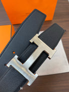H CONTANCE BELT 38MM SILVER BUCKLE BLACK LEATHER