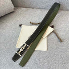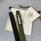 H MARIN REVERSIBLE BELT 32MM SILVER BUCKLE BLACK DARK GREEN LEATHER