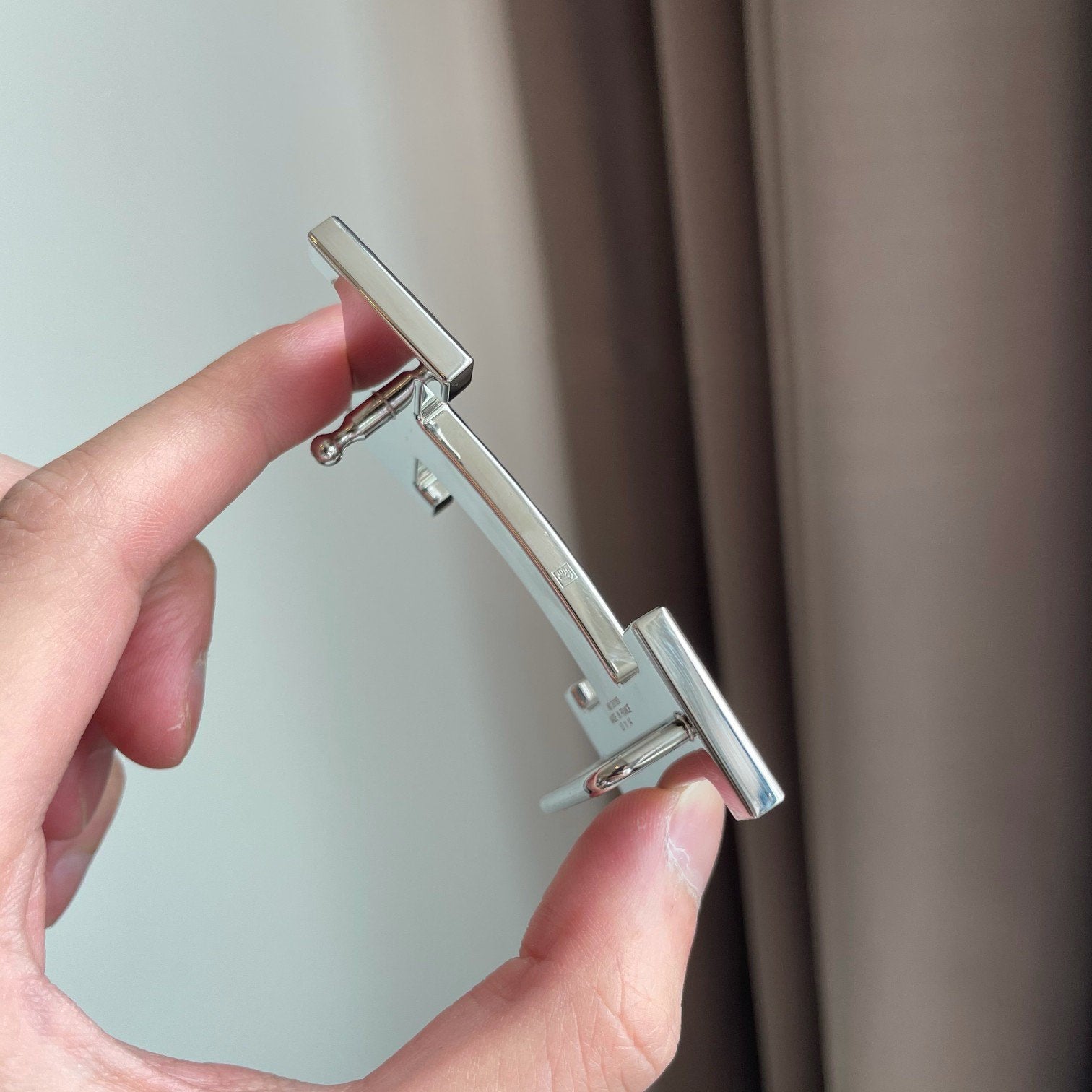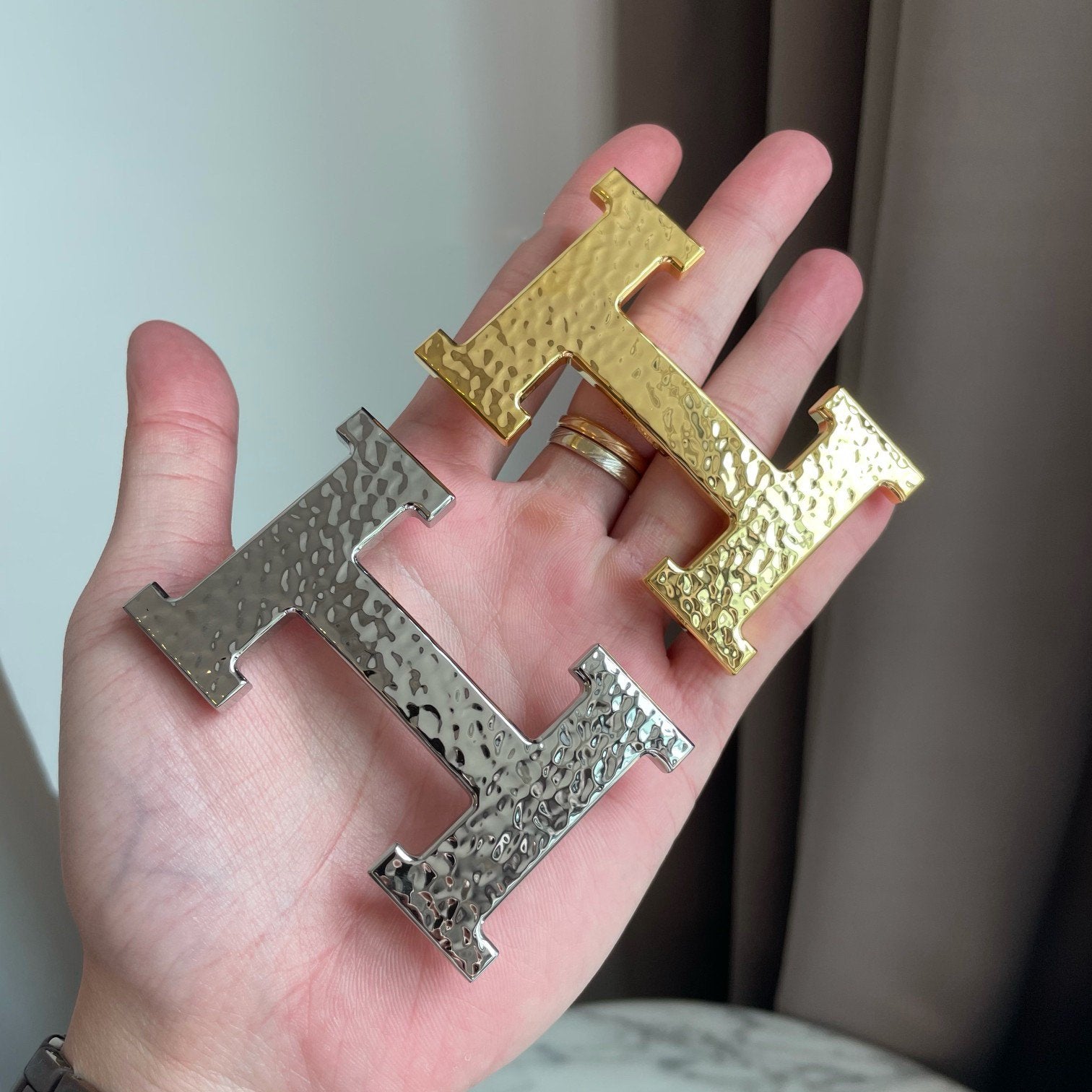 H Buckle in permabrass plated metal.