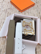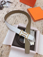 H TONIGHT BELT 38MM WHITE ETOUPE LEATHER