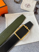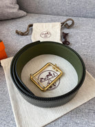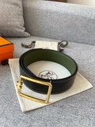 H TUBE BELT 38MM GOLD BUCKLE GREEN BLACK LEATHER