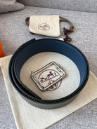 H TUBE BELT 38MM SILVER BUCKLE BLUE BLACK LEATHER