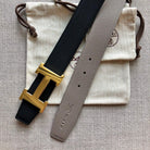 HM BELT BUCKLE & REVERSIBLE BLACK AND TAN BROWN LEATHER STRAP 38MM GOLD HARDWARE