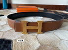 HM CONSTANCE BELT BUCKLE & REVERSIBLE BRONZE BROWN LEATHER STRAP 38MM GOLD HARDWARE