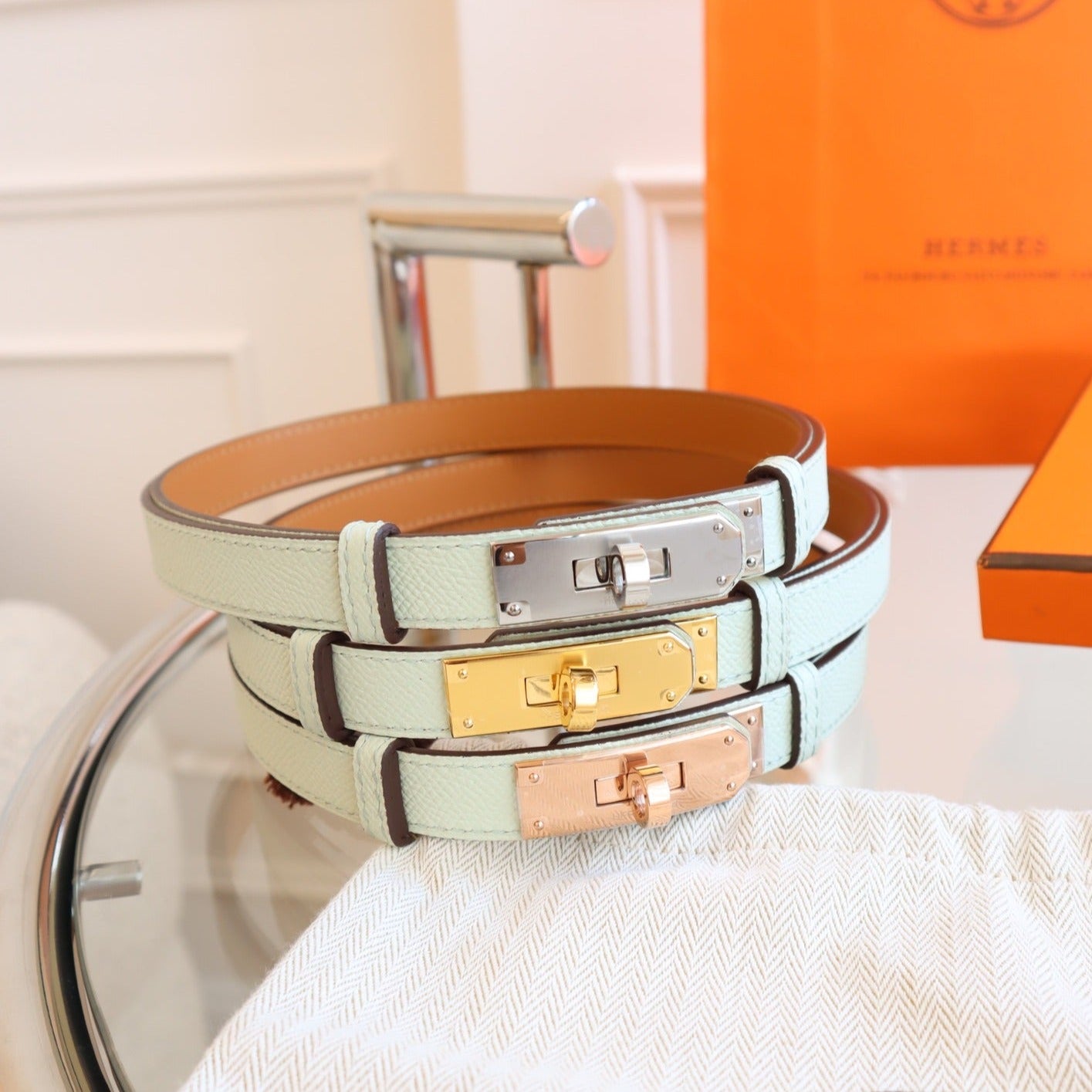 hm kelly belt 18mm aspirin blue epsom leather