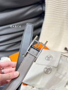 HM QUENTIN 32MM REVERSIBLE BELT BLACK AND KHAKI BROWN LEATHER BLACK HARDWARE
