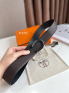 LUCK BELT BUCKLE & REVERSIBLE CHOCOLATE BROWN LEATHER STRAP 38MM BLACK HARDWARE