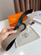 LUCK BELT BUCKLE & REVERSIBLE KHAKI BROWN LEATHER STRAP 38MM BLACK HARDWARE