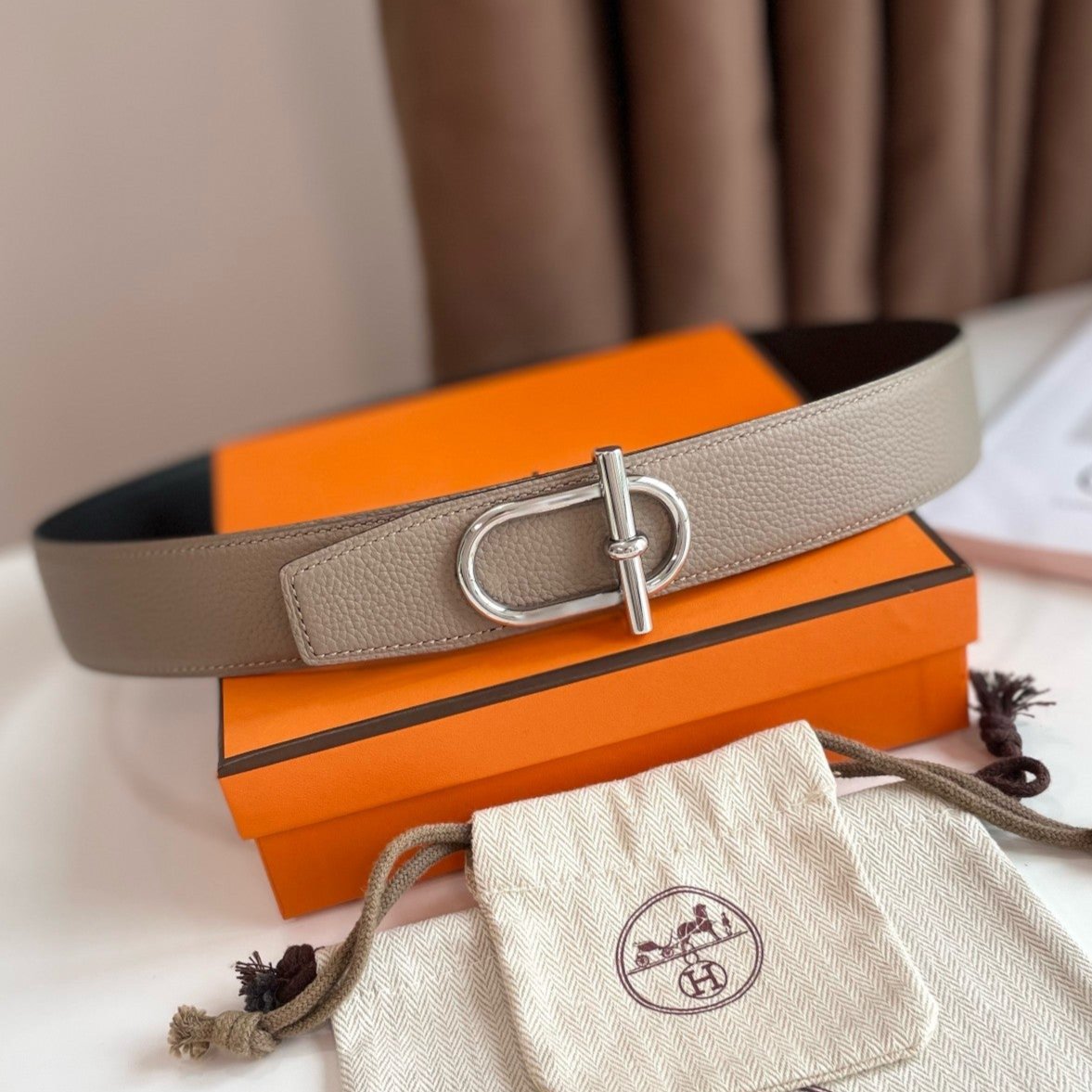 HM ITHAQUE BELT SILVER BUCKLE & REVERSIBLE CINNAMON BROWN AND BLACK LEATHER STRAP 38MM