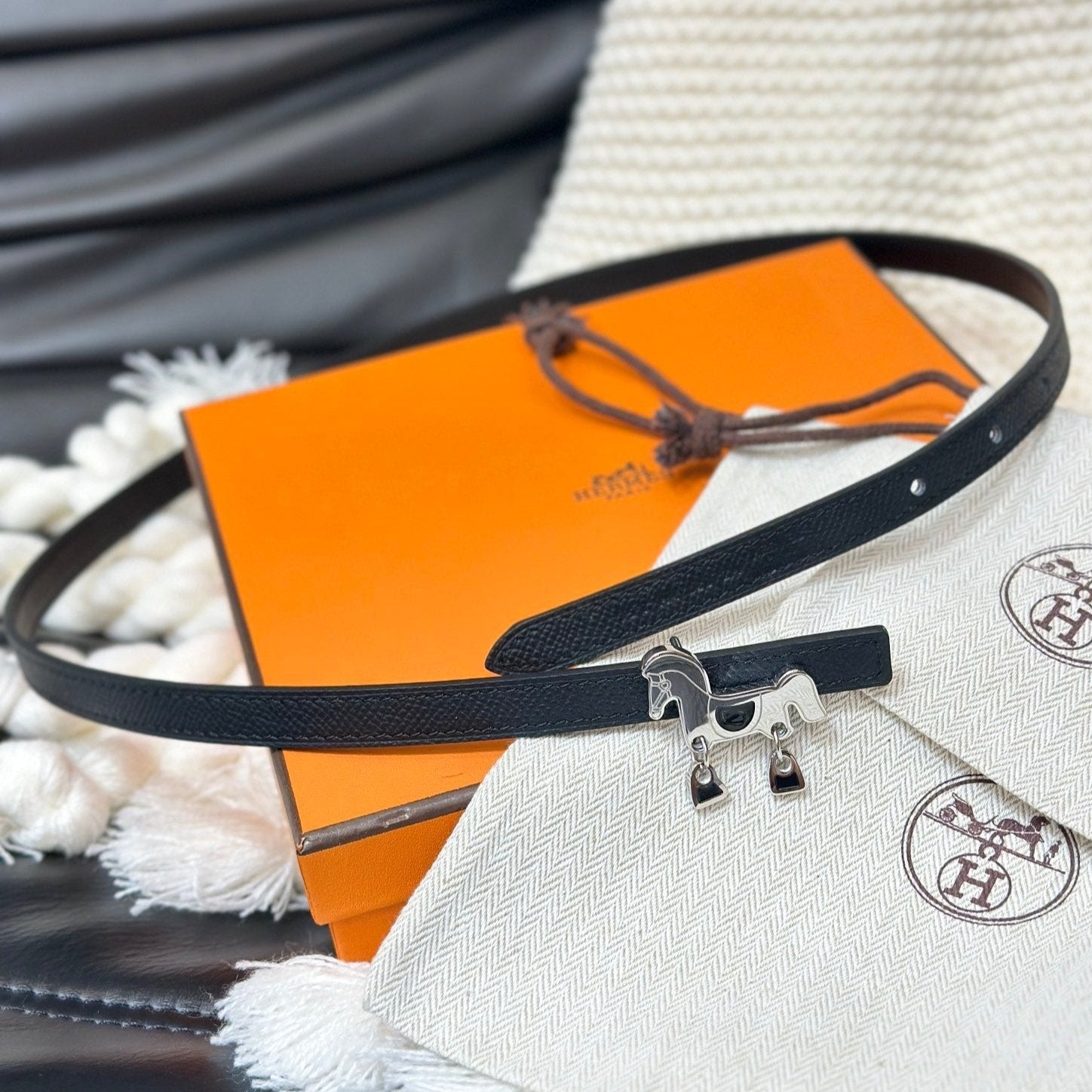HM KELLY POCKET 18MM BELT BLACK LEATHER SILVER HARDWARE